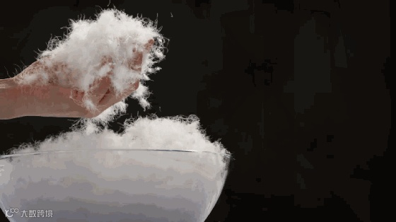 这层羽绒呈特别的芦花状,上面密布千万个细小气孔