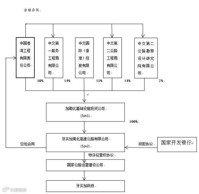 牙买加南北高速公路公司,成立于2011年9月13日,注册资本50万美元,为项目借款方和运营方。该公司由中国港湾、中交国际、中交一航局、中交二公局和中交二院共同出资在巴巴多斯注册成立加勒比基础设施投资公司在牙买加出资设立 |