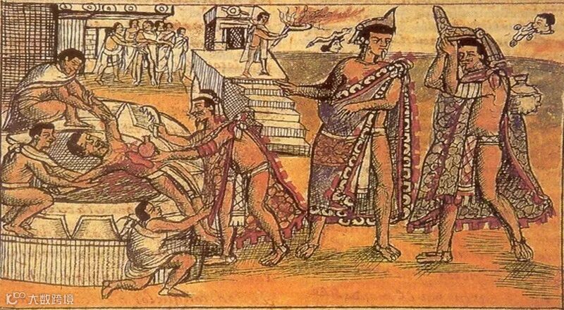 阿兹特克人于每年的十月举行火神祭,将几个人牲投入火中,在人牲断气之前,再将他们拉出火堆,并将他们仍跳动的心脏取出。