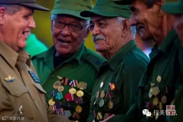 ↑2014年1月10日,古巴老游击队员佩戴着勋章,出席庆祝革命胜利纪念日。