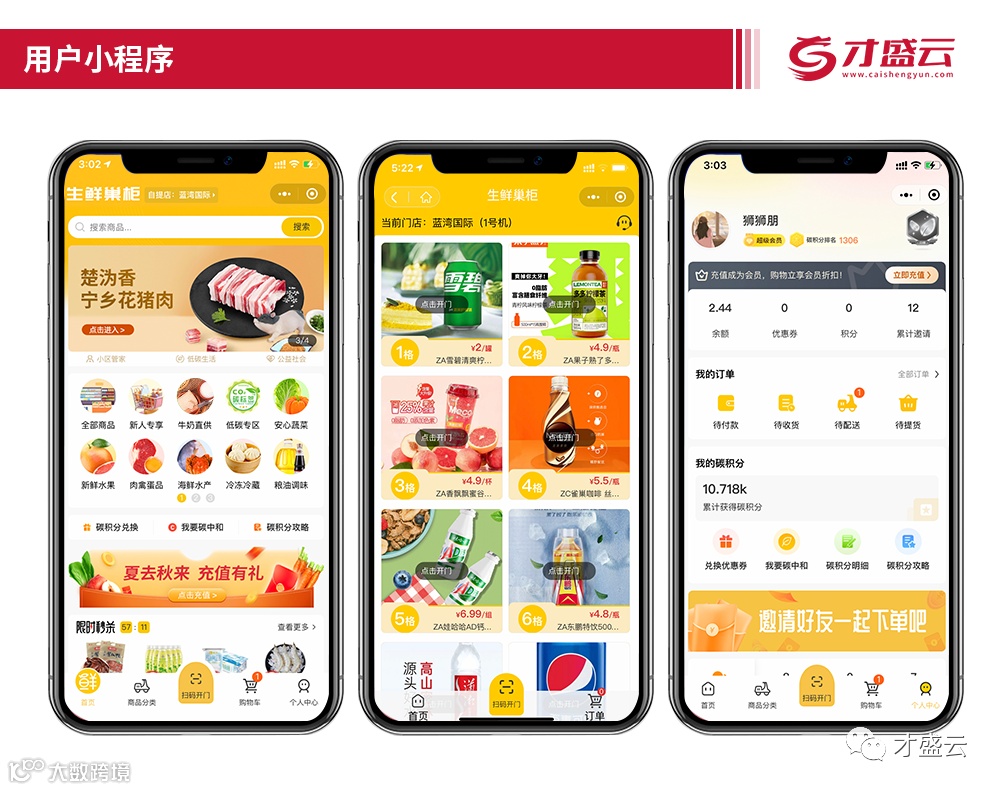 平台运营:专注社区智能生鲜柜,主打以“科技+产业物联网+社群运营”的创新运营模式,进驻万千社区,打造千城万店,用智能生鲜柜为载体,连接了居民百姓的衣食住行,智能生鲜柜不仅实现了居民在楼下24小时即时购买需求,也可以通过线上预订,柜内取货,实现农产品从田间到老百姓餐桌以及产品溯源。