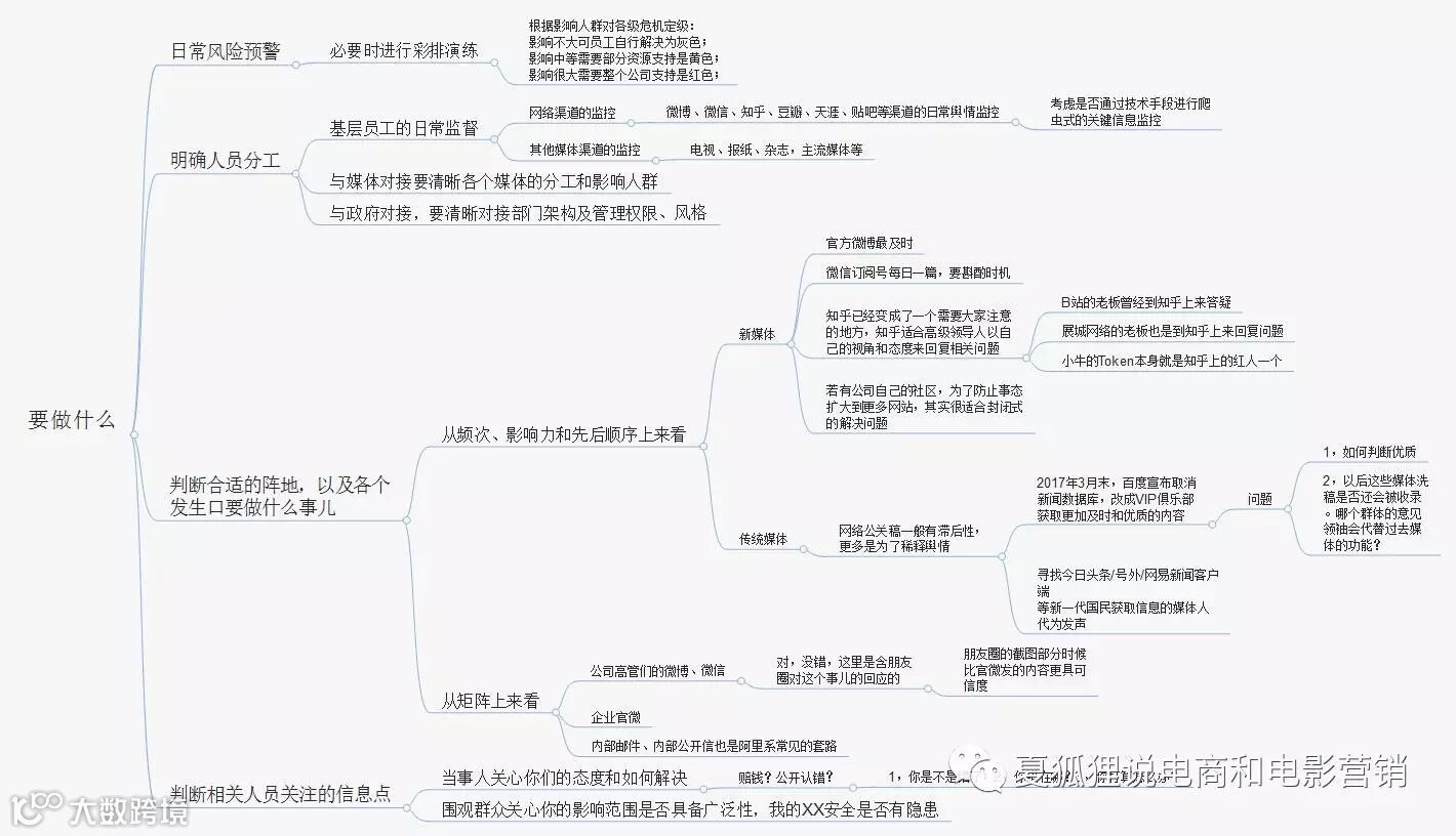 下面我们就通过脑图来看下,危机公关的几个阶段我们要如何安排相应动作。
