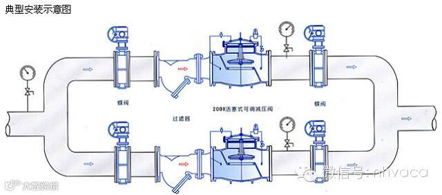 6.用于蒸汽减压时,要设置泄水管。对净化程度要求较高的管道系统,在减压阀前设置过滤器。