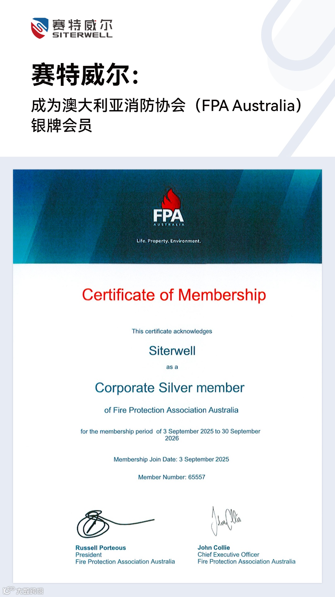 澳大利亚消防协会(FPA Australia)会员身份被广泛视为技术公信力和安全承诺的标志。成为企业银牌会员,不仅意味着从产品质量、可靠性到营造更安全居住环境所作出的贡献等各个方面得到这一权威机构的认可,也为赛特威尔提供了一个更深入参与技术和监管讨论的机会。
