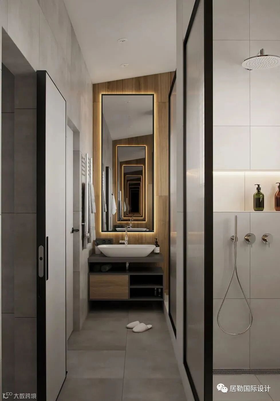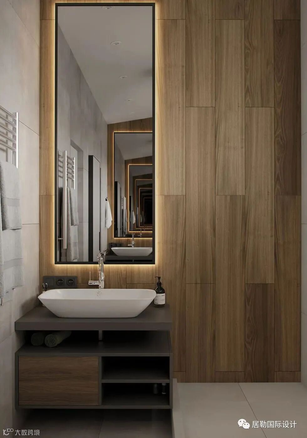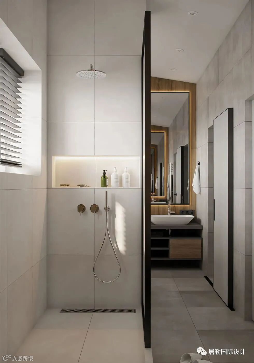 次卫搭配木色材质高端大气,特别是灯的设计,精致与时尚,让整个空间更有艺术感。
