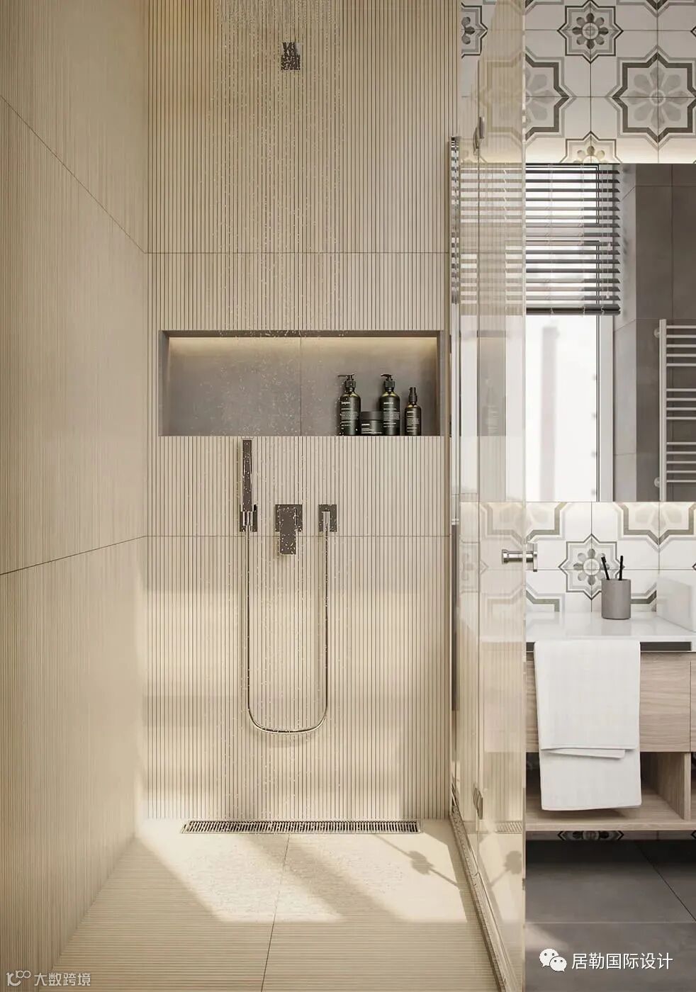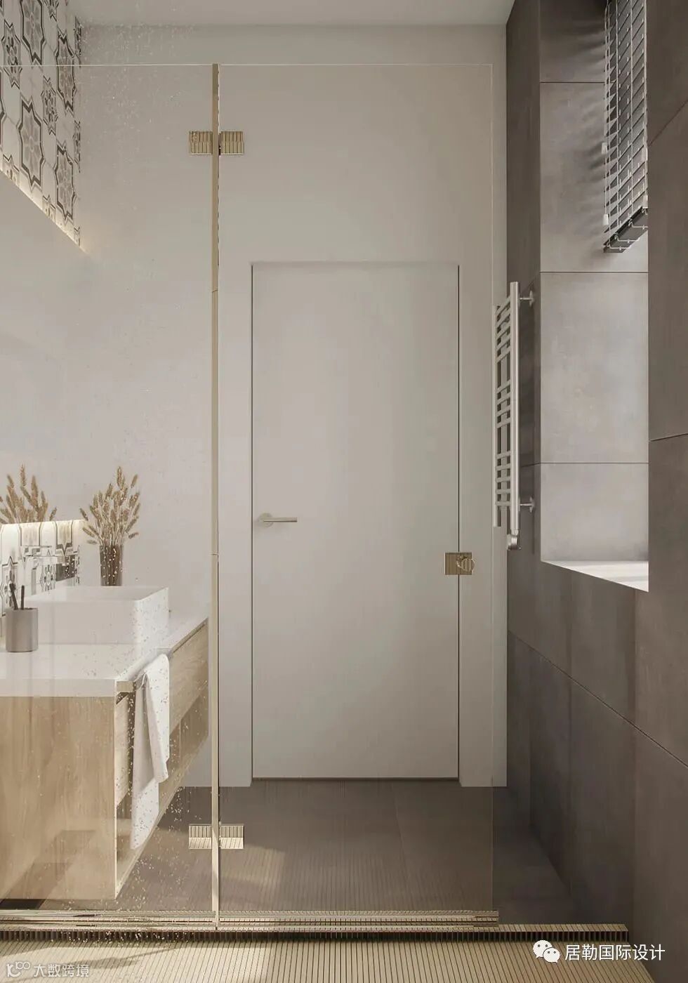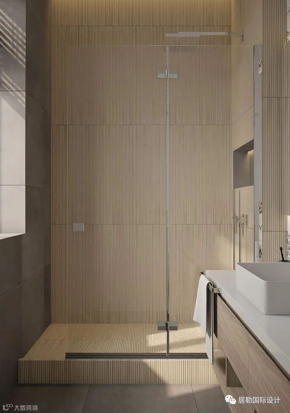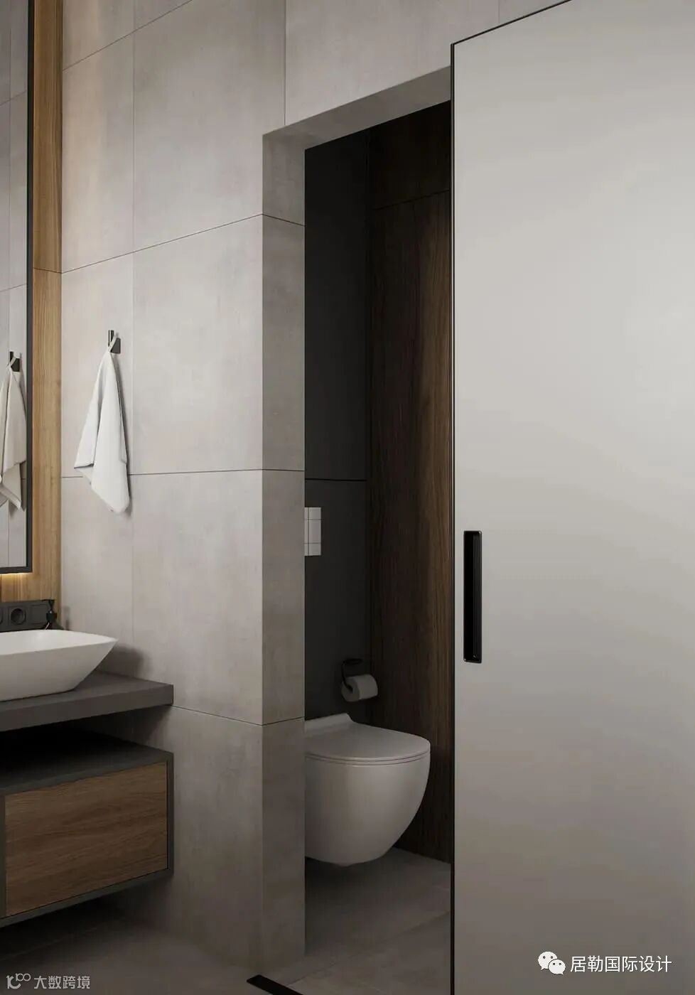 次卫搭配木色材质高端大气,特别是灯的设计,精致与时尚,让整个空间更有艺术感。
