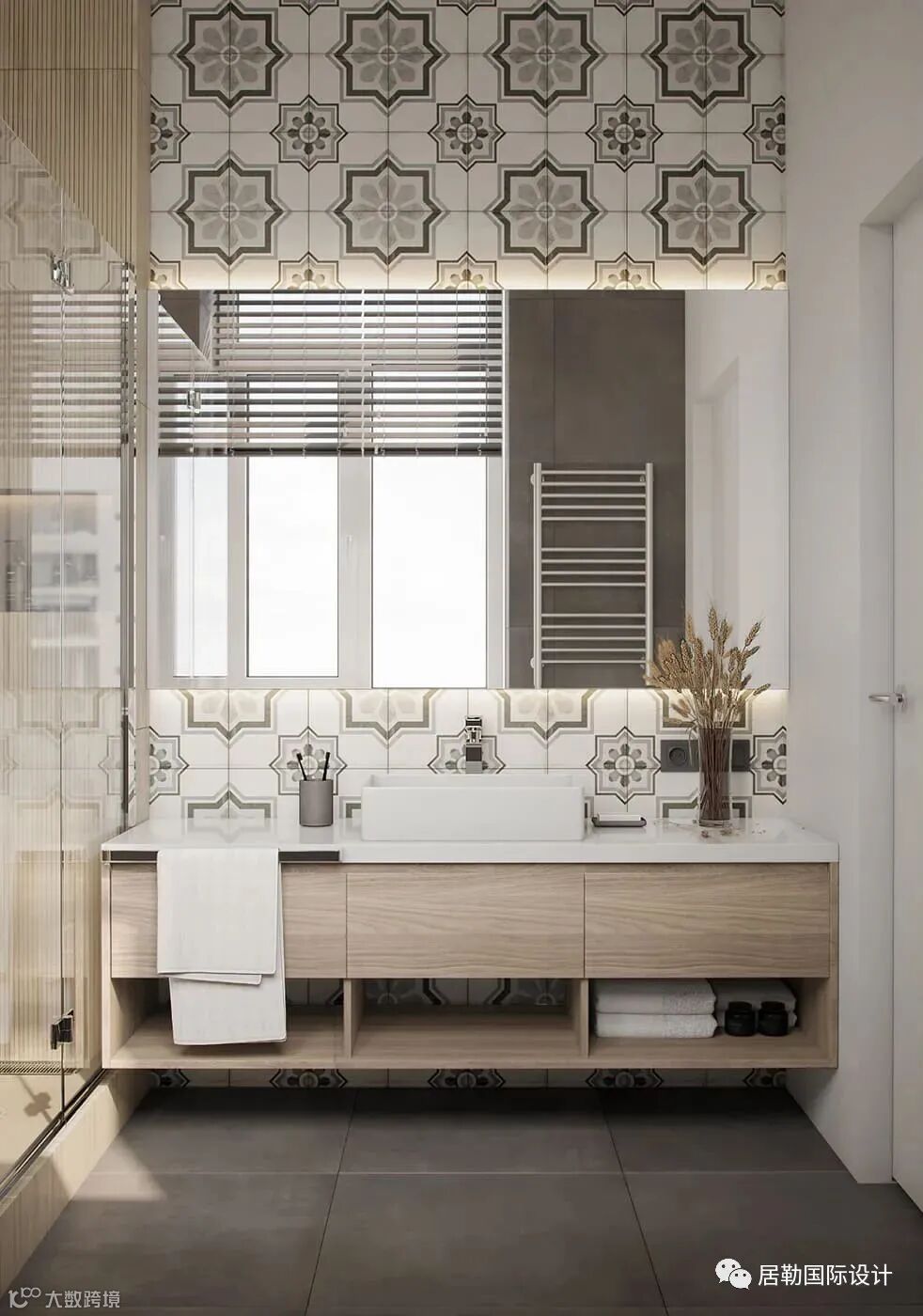 主卫花纹地磁砖很有创意 ,散发出柔和的光芒,映衬出纹理优雅的黑灰色