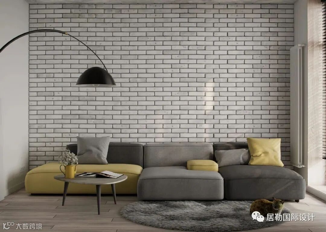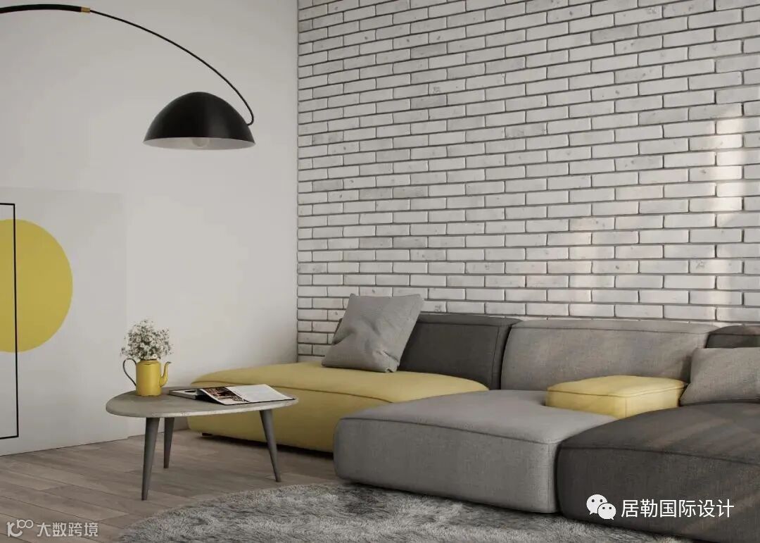 客厅以现代简约风格为基础,磁砖做为沙发的背景,黄与灰的搭配,鲜明中又充满活泼,理性中又存在感知,将生活营造的更为轻松与舒适。