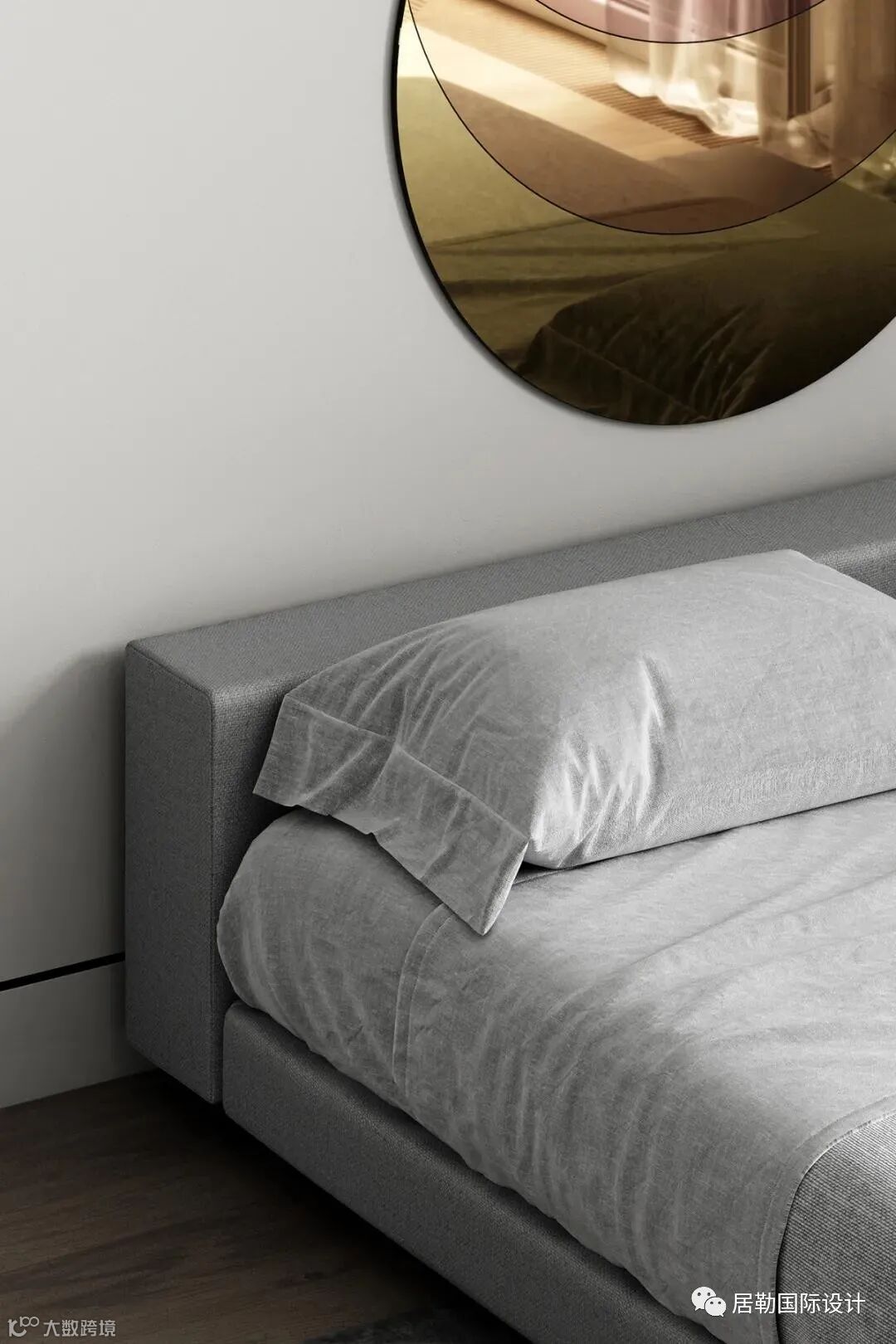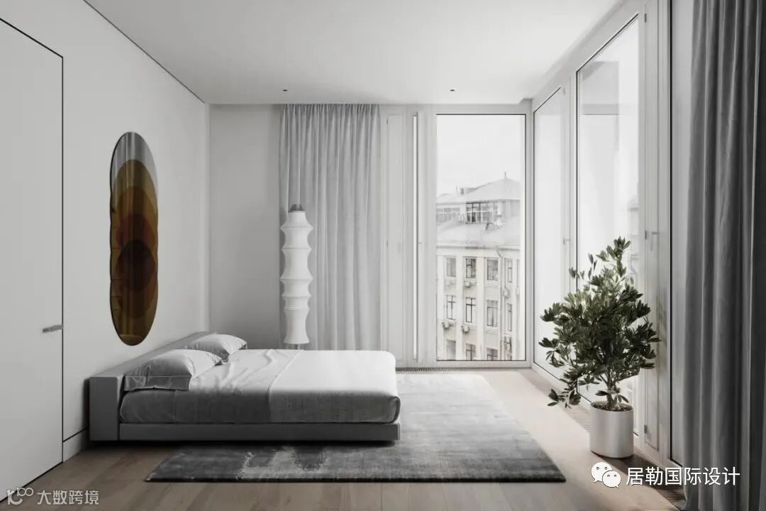 Vladyslava Torhonska利用斑斓的色调来与主色调灰色做结合,创造出既舒适又富有艺术氛围的感觉。
