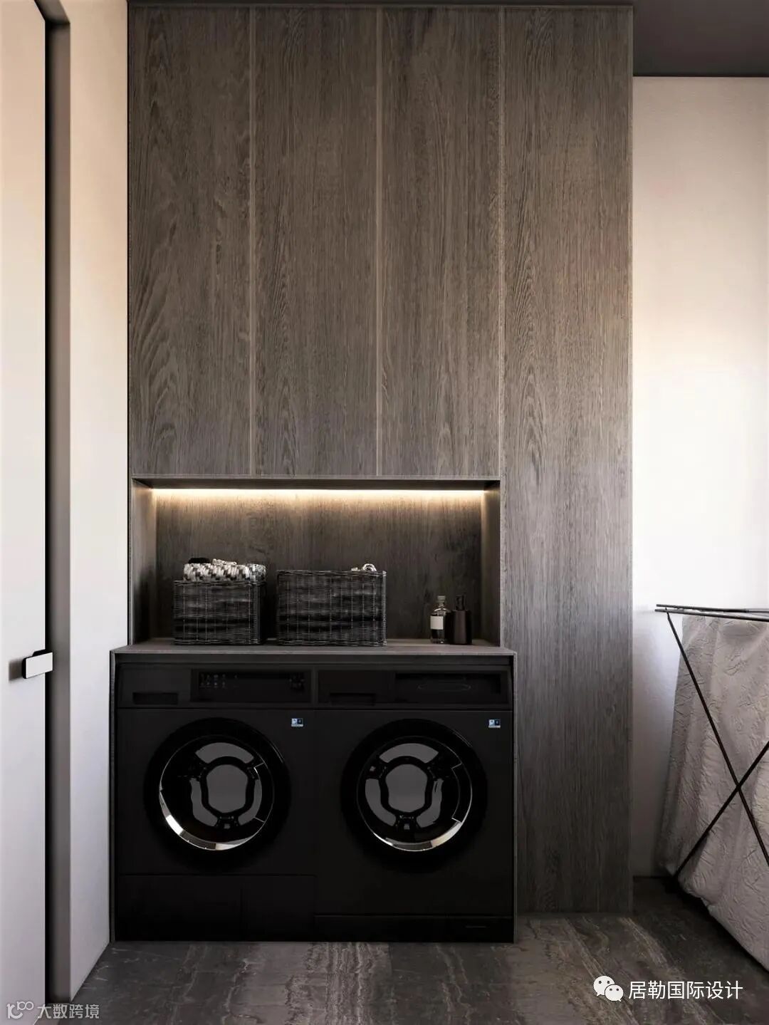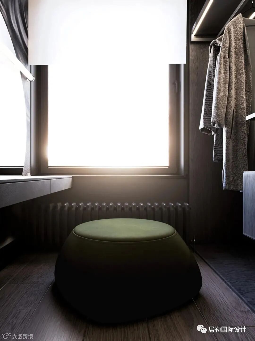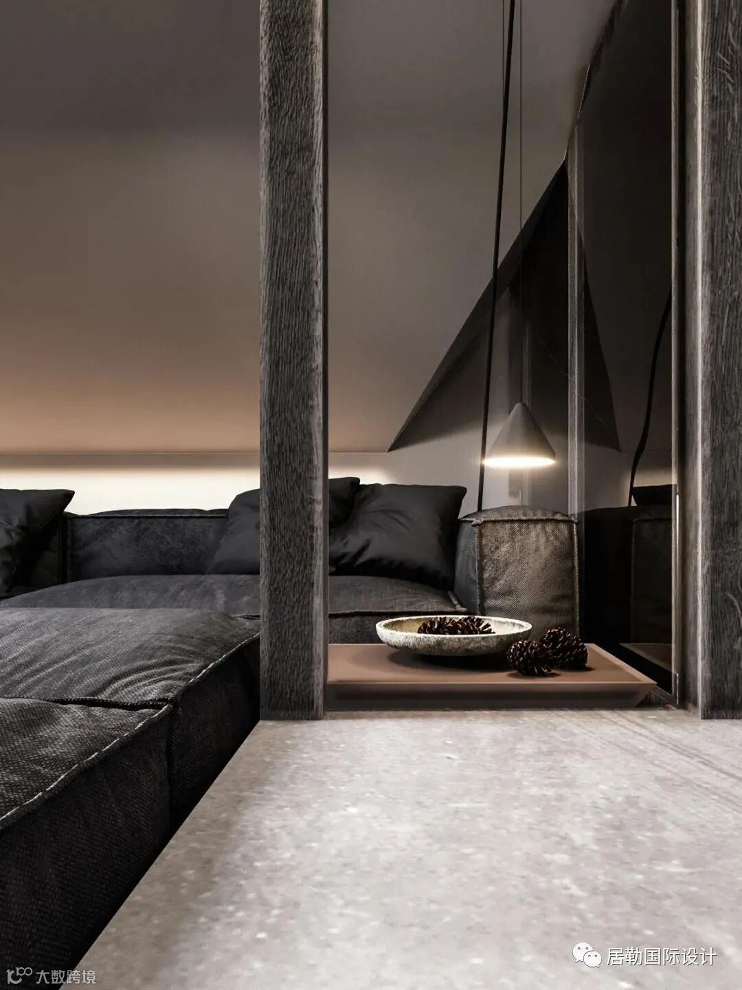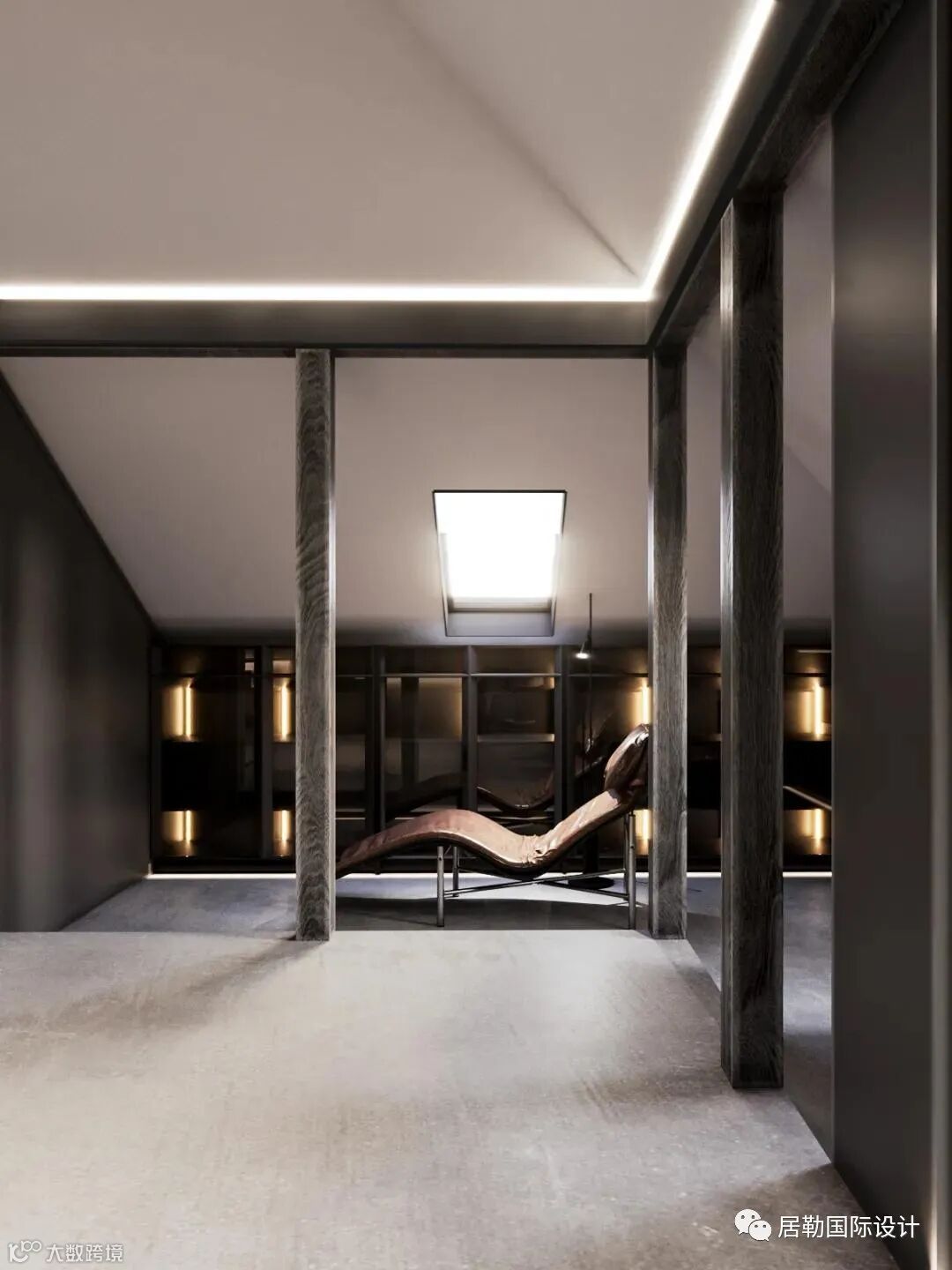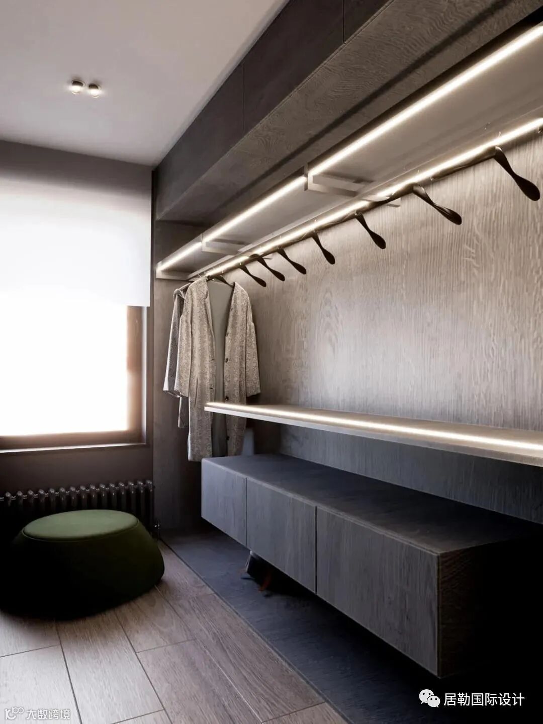 玄关设计延续了客厅的风格,低彩度基调,刚毅峻冷,简洁雅致,一进门看到这样的家居心情也会很舒畅。