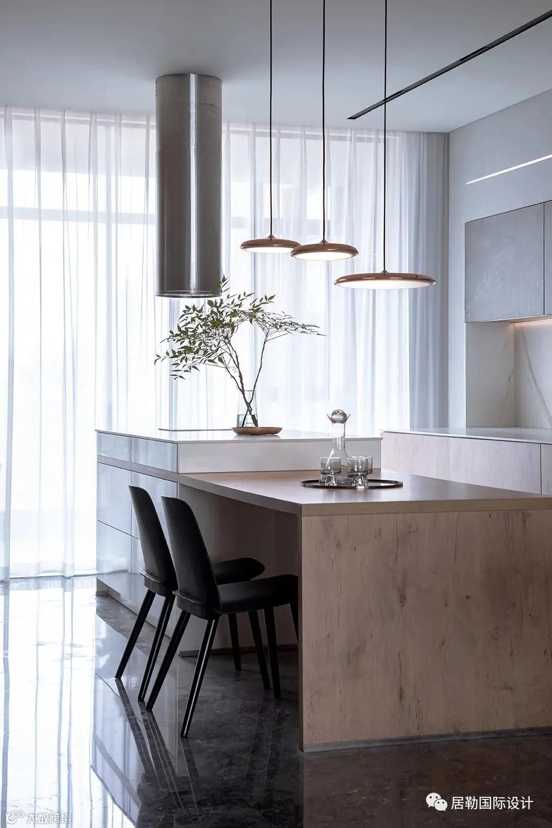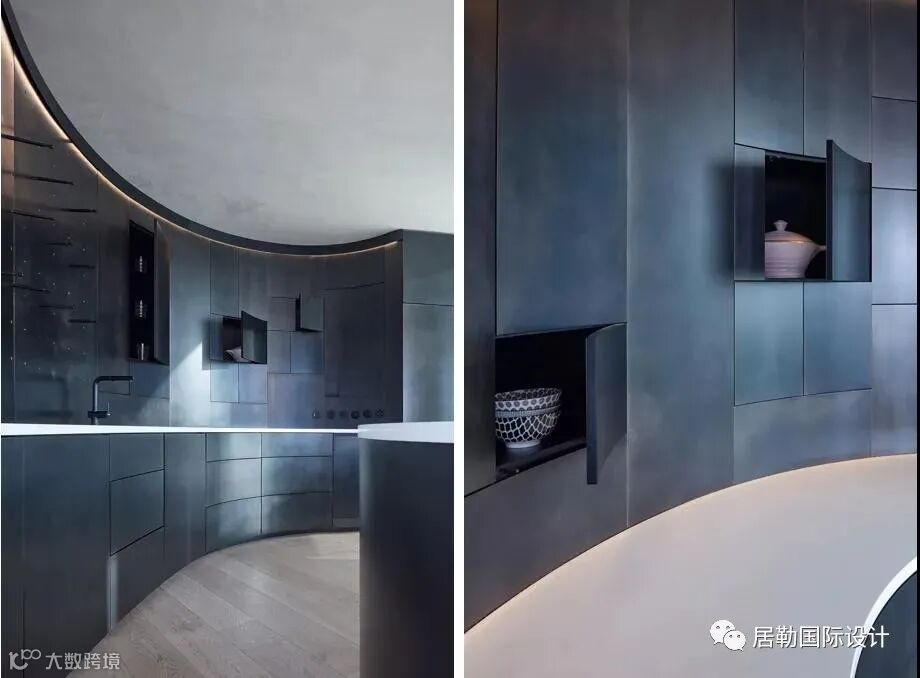 餐厅与厨房中每一件家具都是特别定制的,为室内增添了非凡质感。