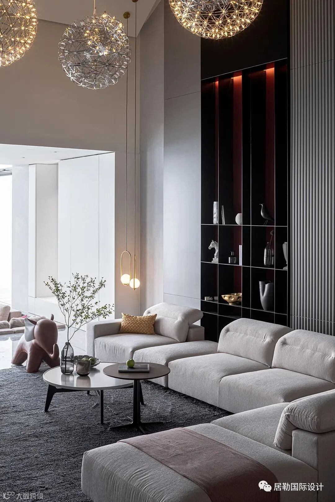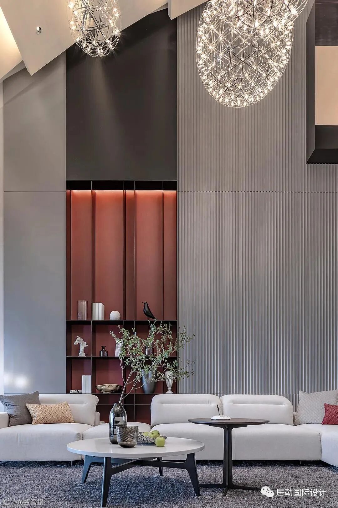 发挥挑高优势,营造恢宏大气之感。同时也可以将挑高墙面进行个性化设计