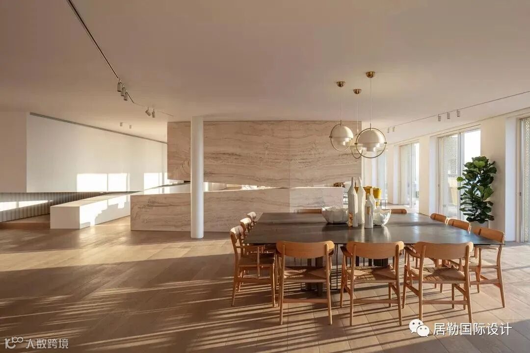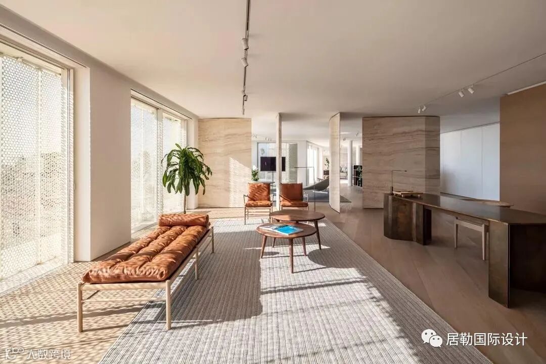 顶层复式的设计主要由两位极简主义大师John Pawson、Pitsou kedem及Baranowitz Goldberg联手操刀,John Pawson负责建筑设计,后两者负责室内设计。