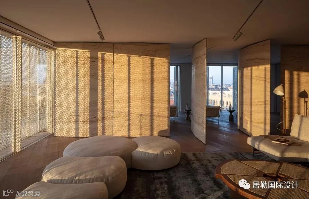 设计师为了回应雅法古城悠久的历史,延续建筑设计的格调,在室内设计部分以当地石材打造的艺术造型墙为亮点之一,呈现奢宅不可或缺的艺术性。