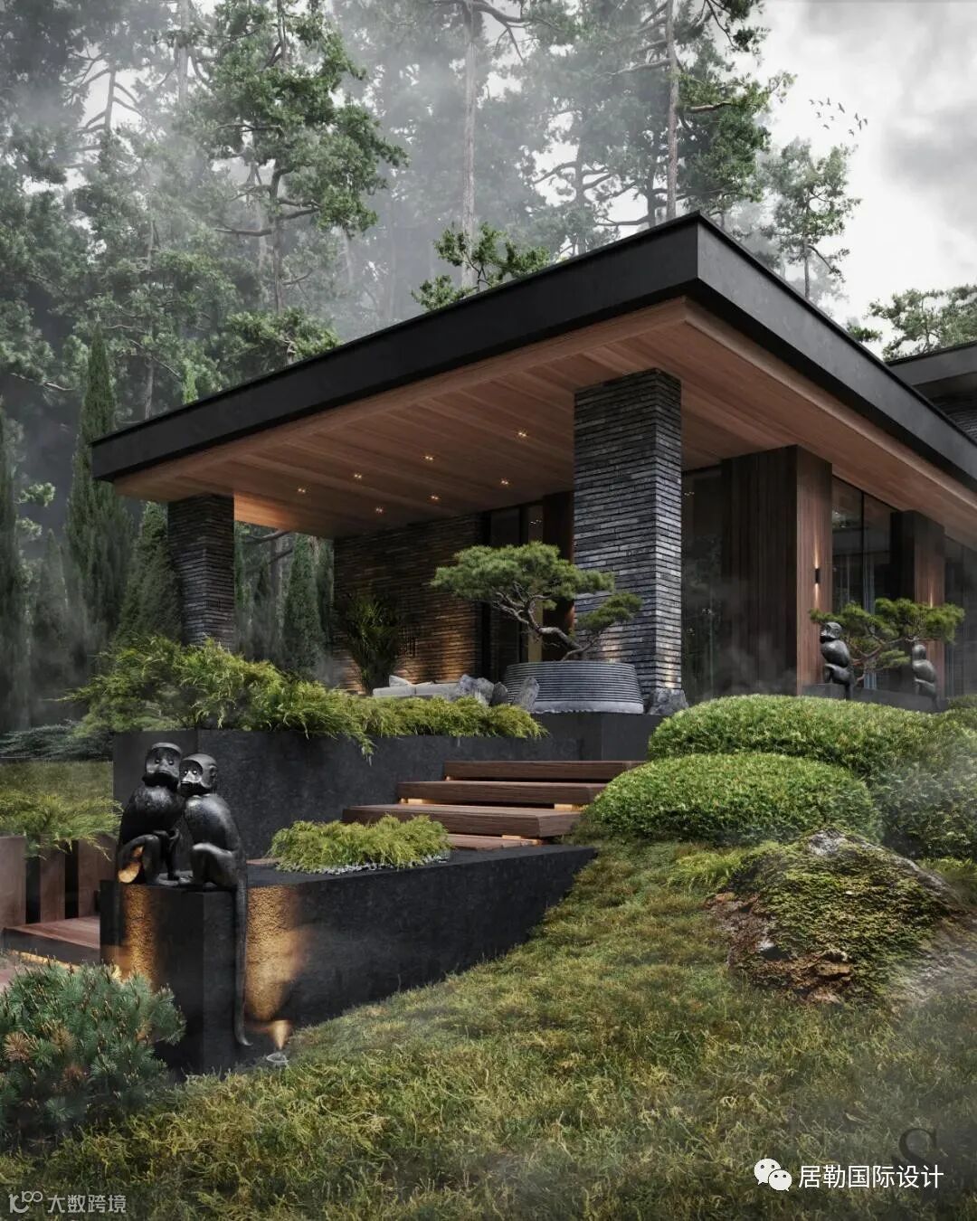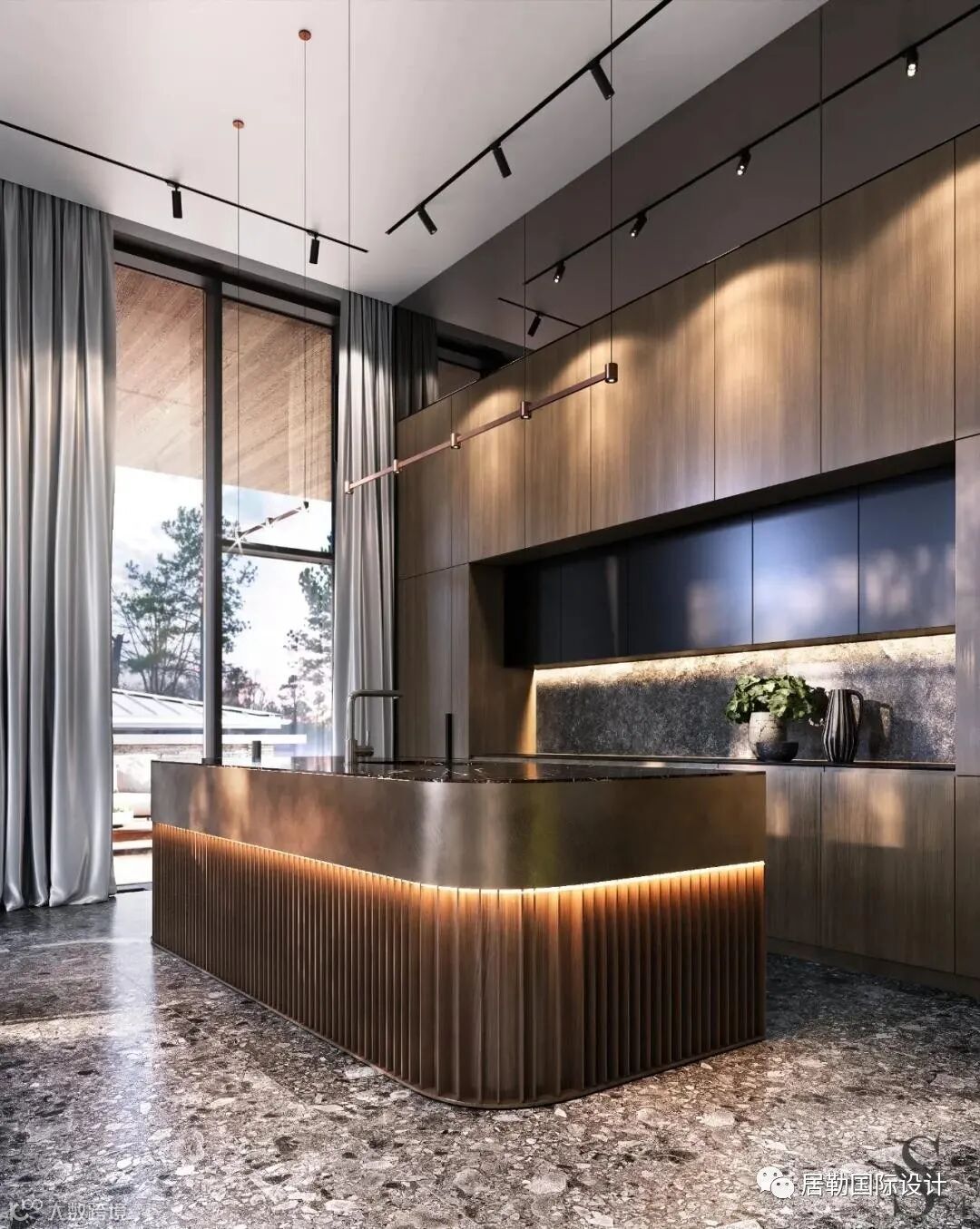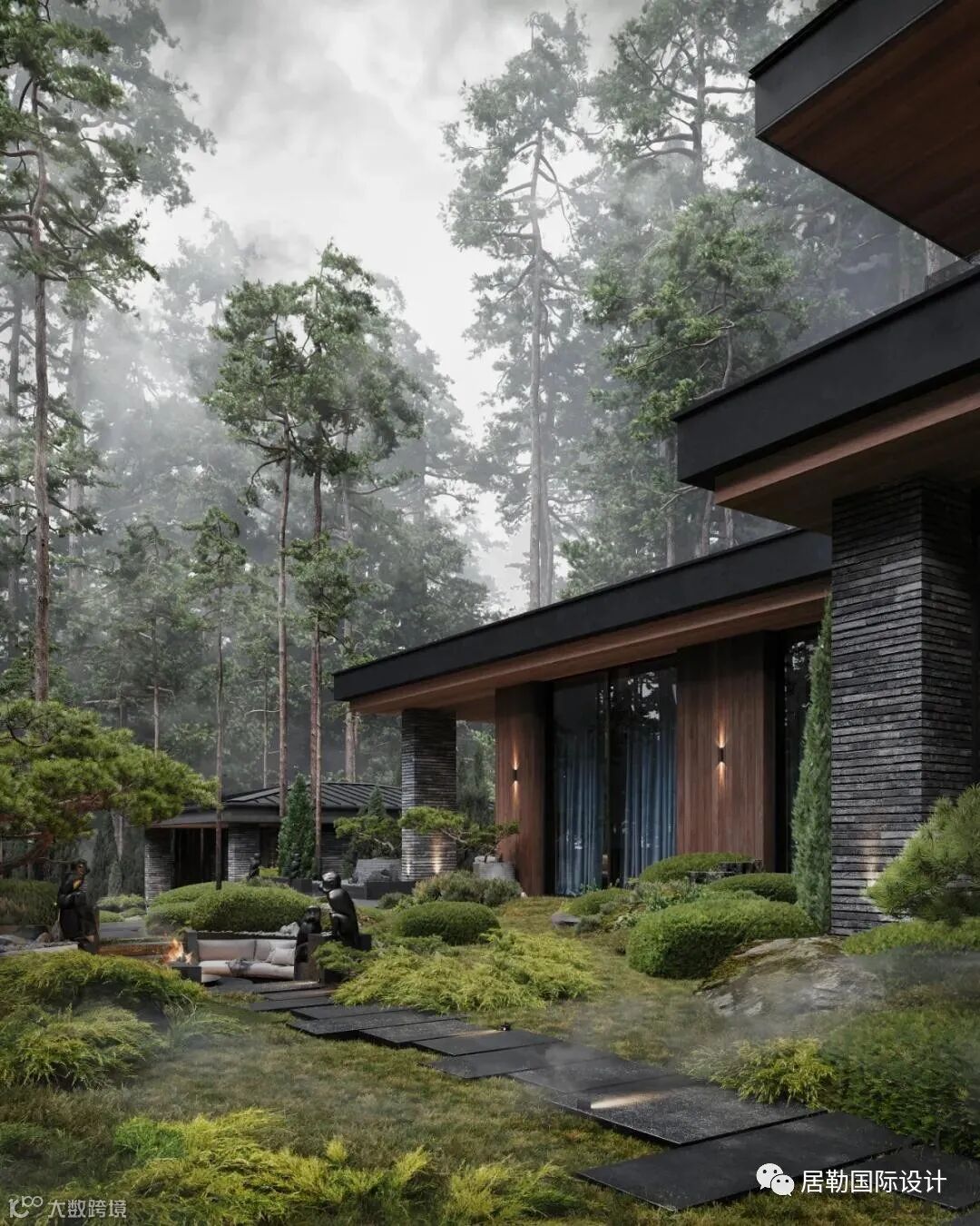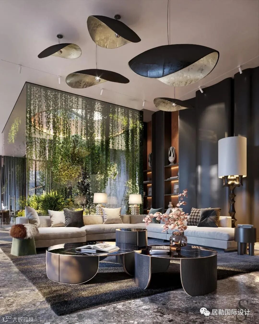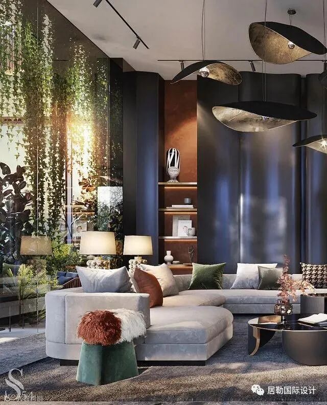 充足的自然光,模糊了室内与周围自然之间的界限,黑色、灰色和深金色的组合并非偶然选择:在这样的背景下,周围的绿色景观尽可能地突出。