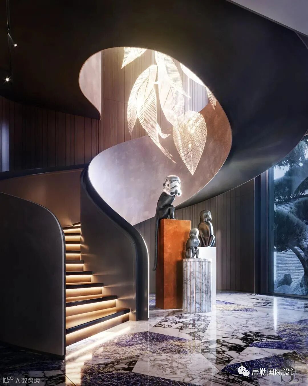 最不寻常的楼梯形状,也需要装饰材料和雕塑元素来使空间栩栩如生。