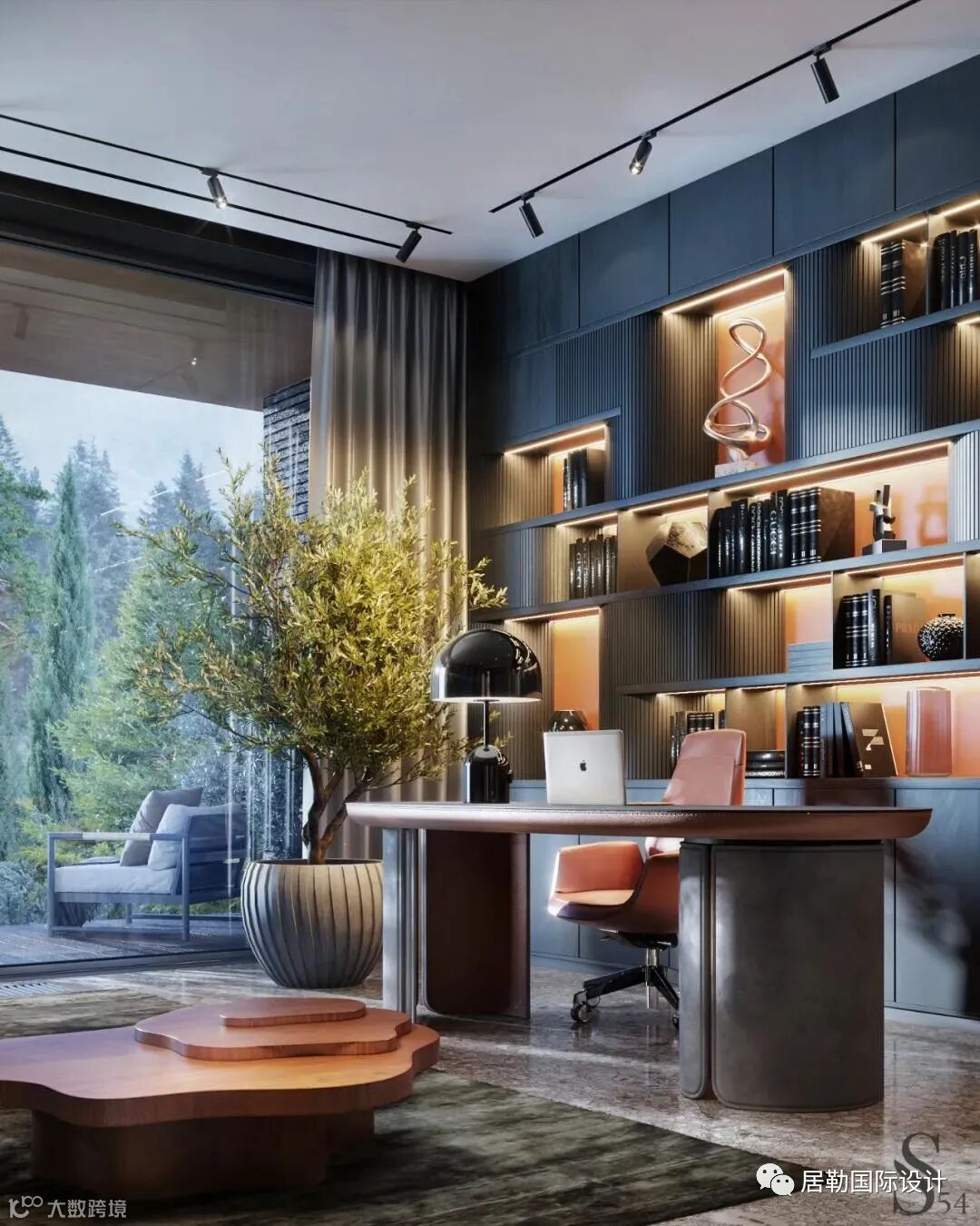 家庭办公室是一个多功能的实体空间,适合全面舒适的工作。带隔层的架子,用于存放文件、多功能一体机和工作配件,用于短暂休息的躺椅或带咖啡桌的沙发组。