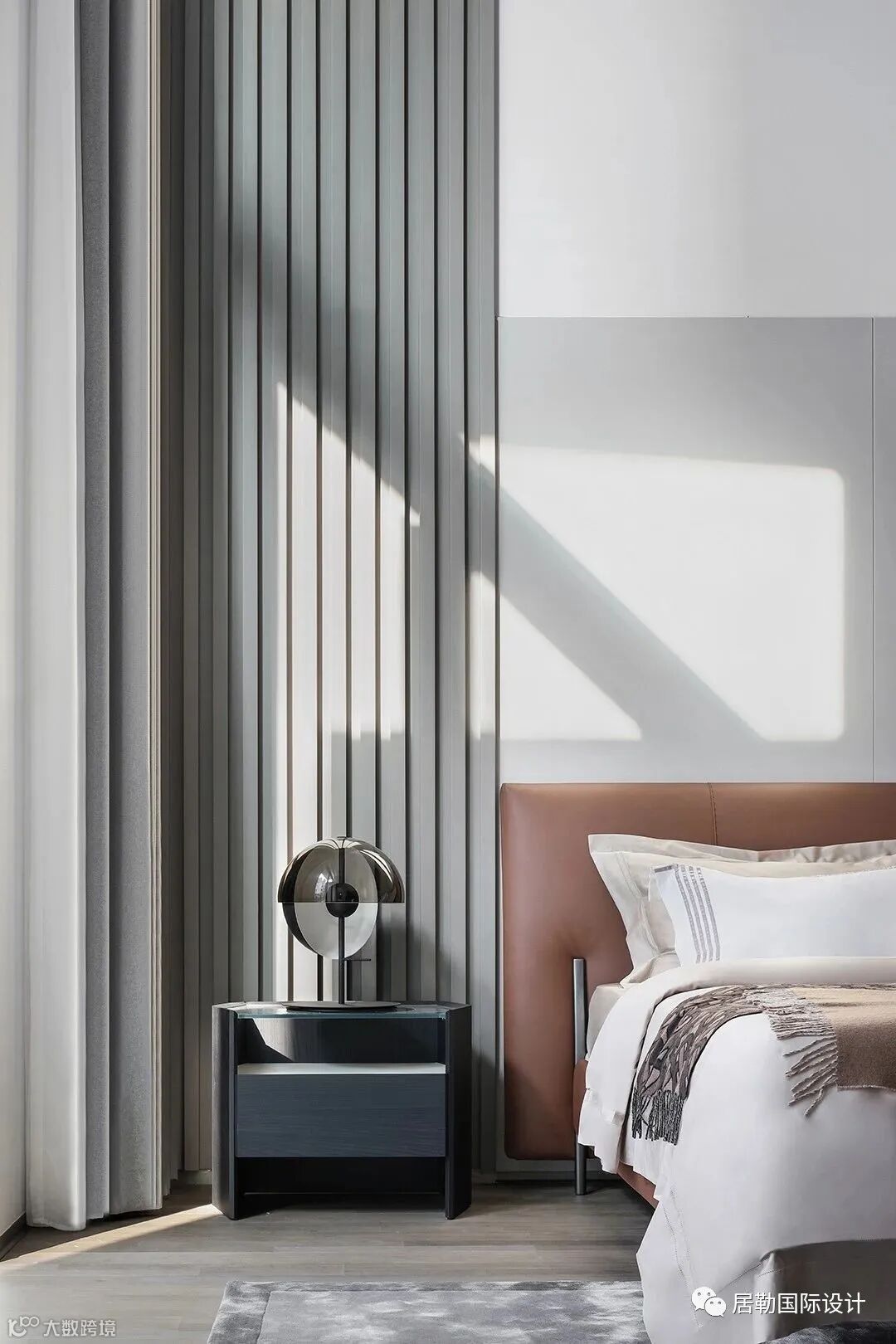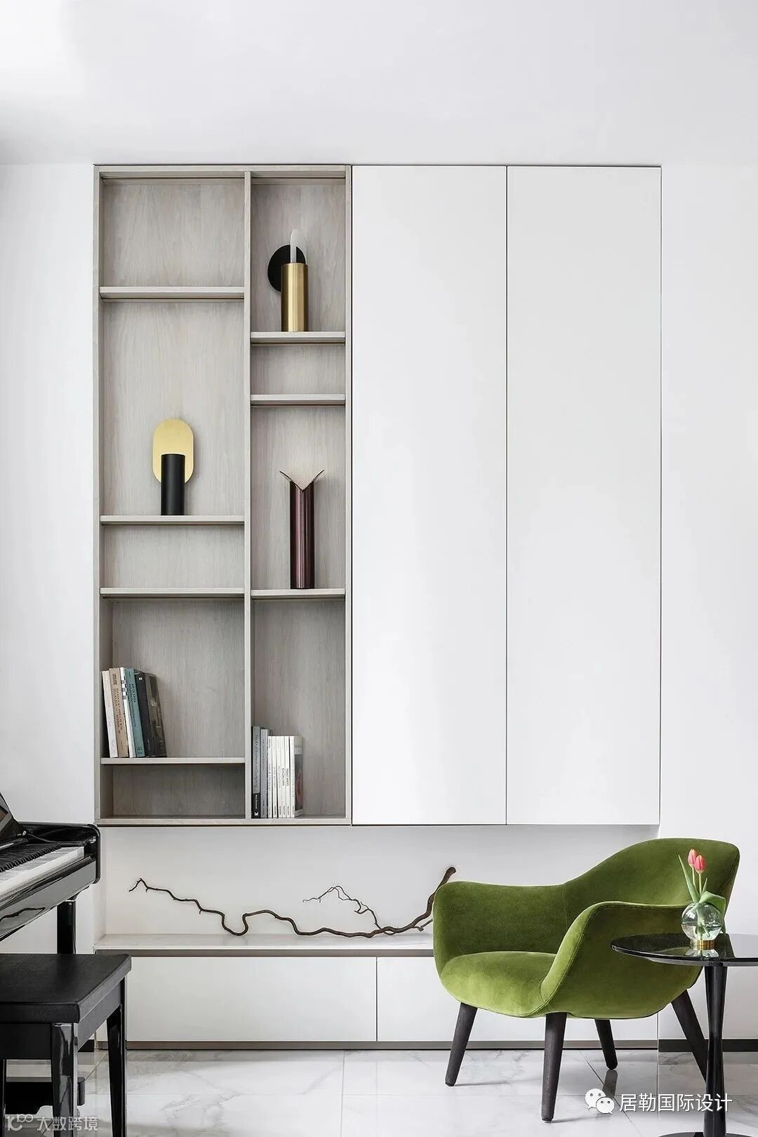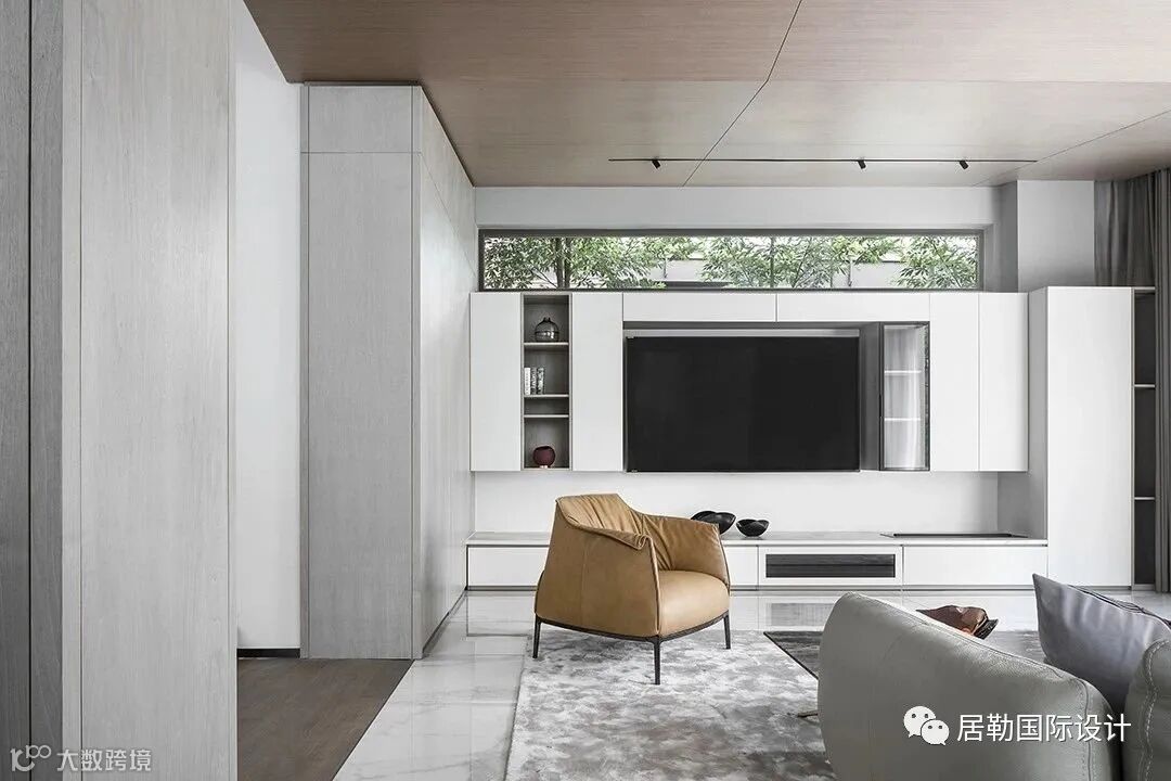 冷灰质地中的亮色,条窗引入的自然之景,都使空间愈增温度。