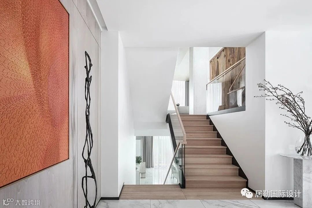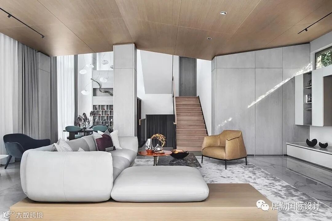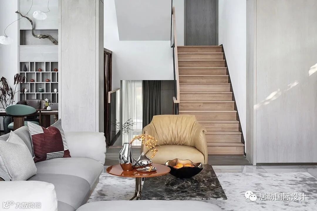 设计师打破常规,在设计中把西厨、餐厅移到了负一楼,将一楼原有的分散空间进行了巧妙的整合,化零为整,使得空间尺度得以放大,视野开阔通透,低调质感的家具点缀其间,克制典雅。