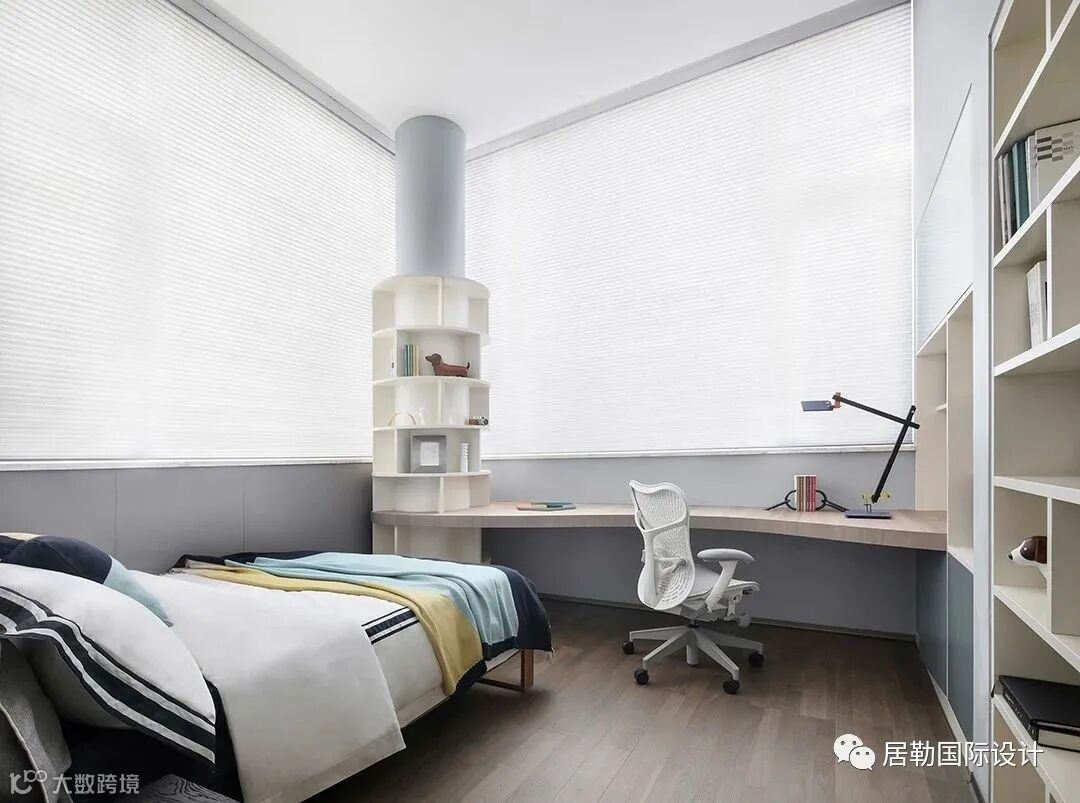 主卧的棕红、儿子房的蓝绿、老人房的灰白,象征着每个家庭成员的自身烙印,童年的天真自信、中年的内敛克制、老年的宁静祥和,这同样也是一种对自然的契合,万物亘古不变的生息之理正是如此。