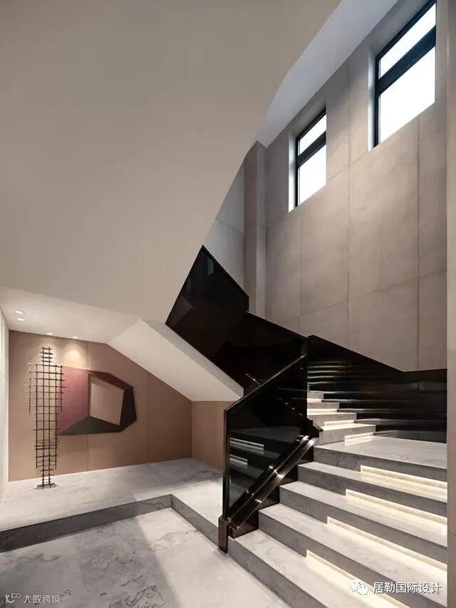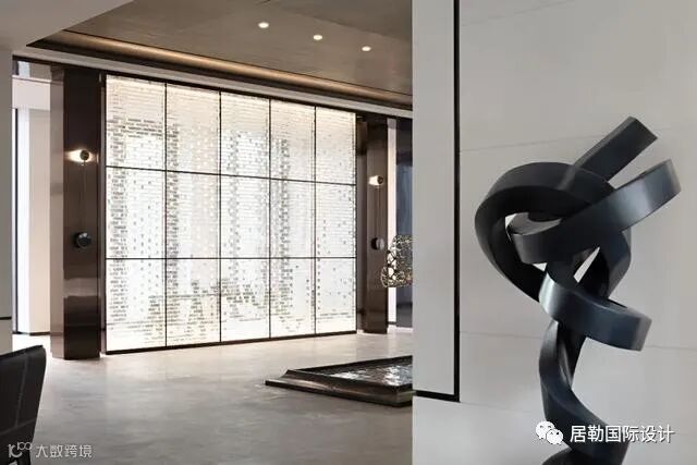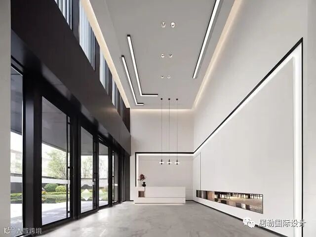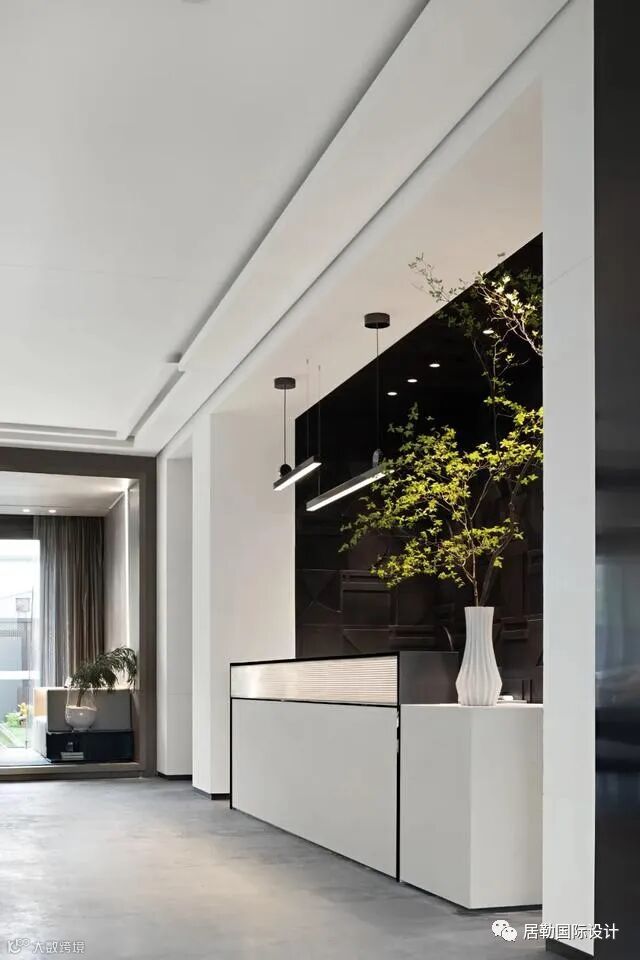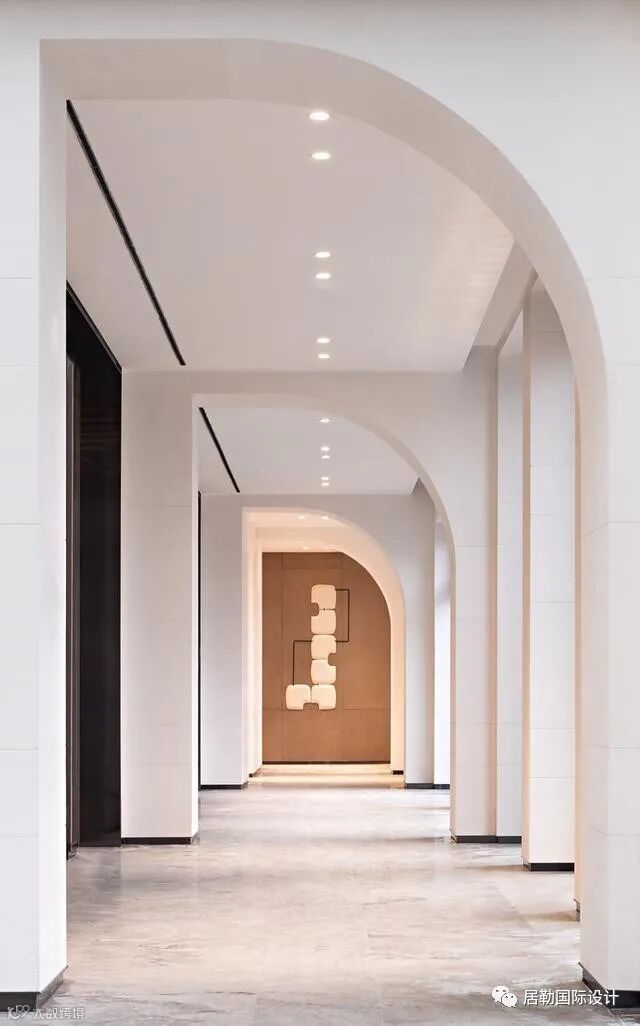 过道的设计采用不规则几何形状的门框造型,