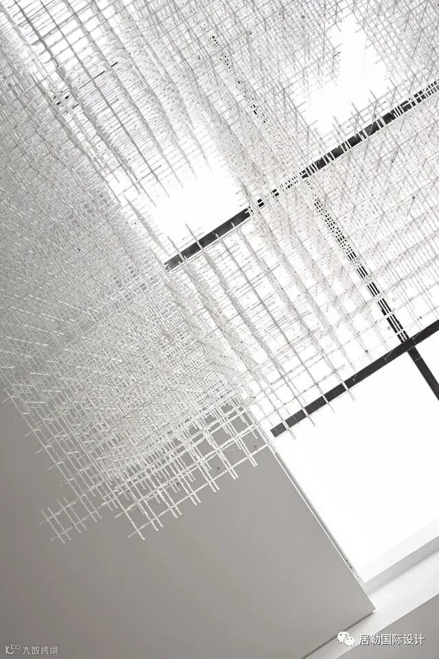 吊灯的齿轮圆形设计打破了空间的单一线性构造,将线、面、空间独特的交融在一起,蕴含着安静而微妙的力量,达到了巧妙的平衡。