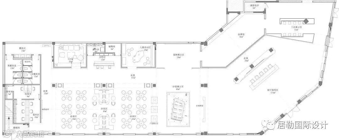 洽谈区开放、流动的手法糅合充足的采光,空间材料及色彩干净、简约,但墙面的线条勾勒却充满层次和细节。