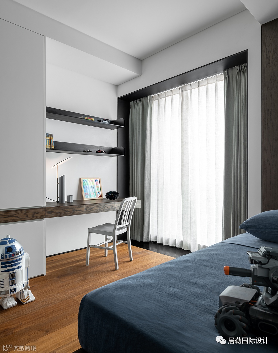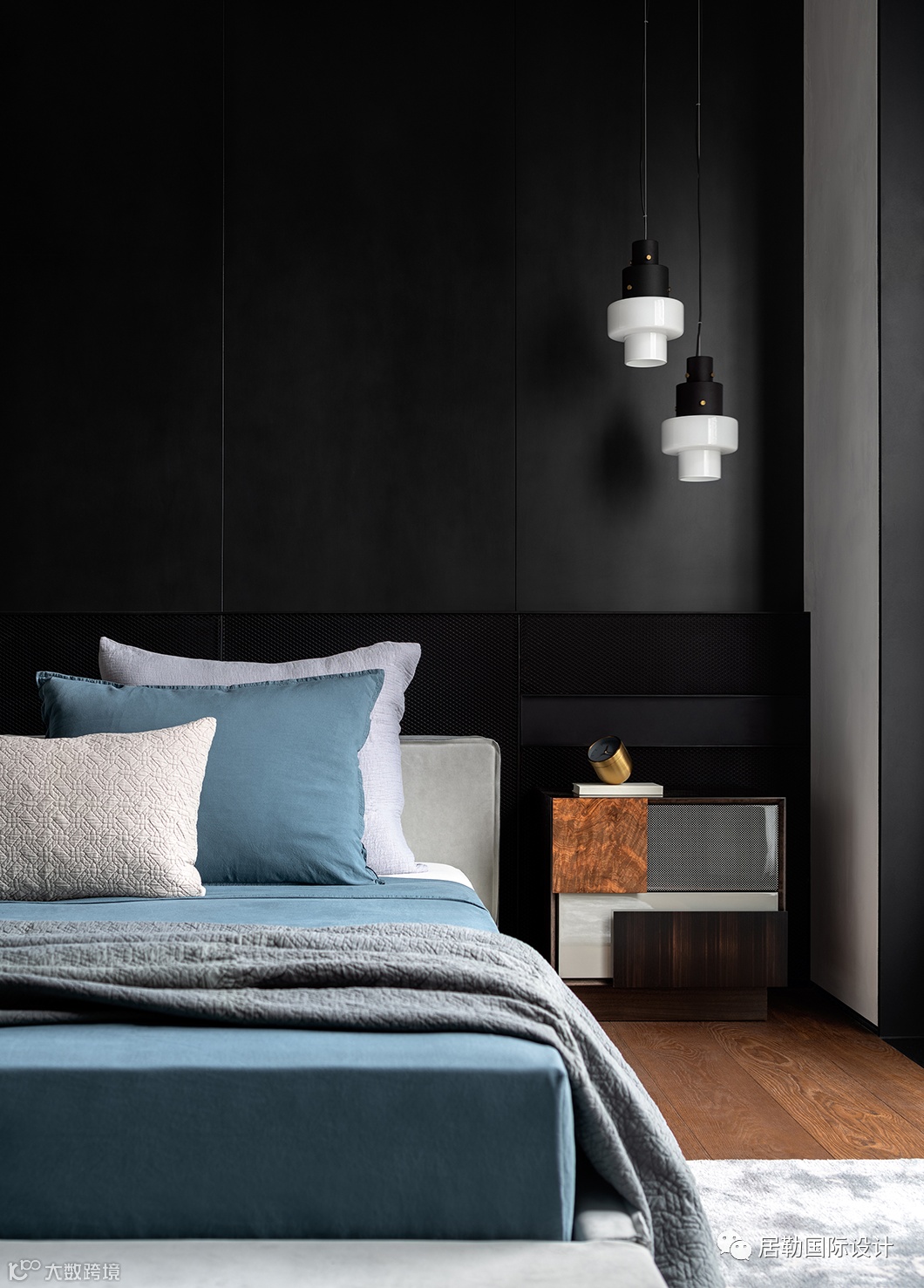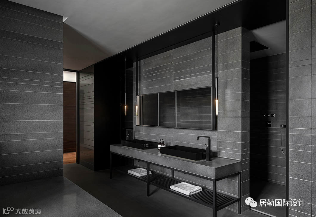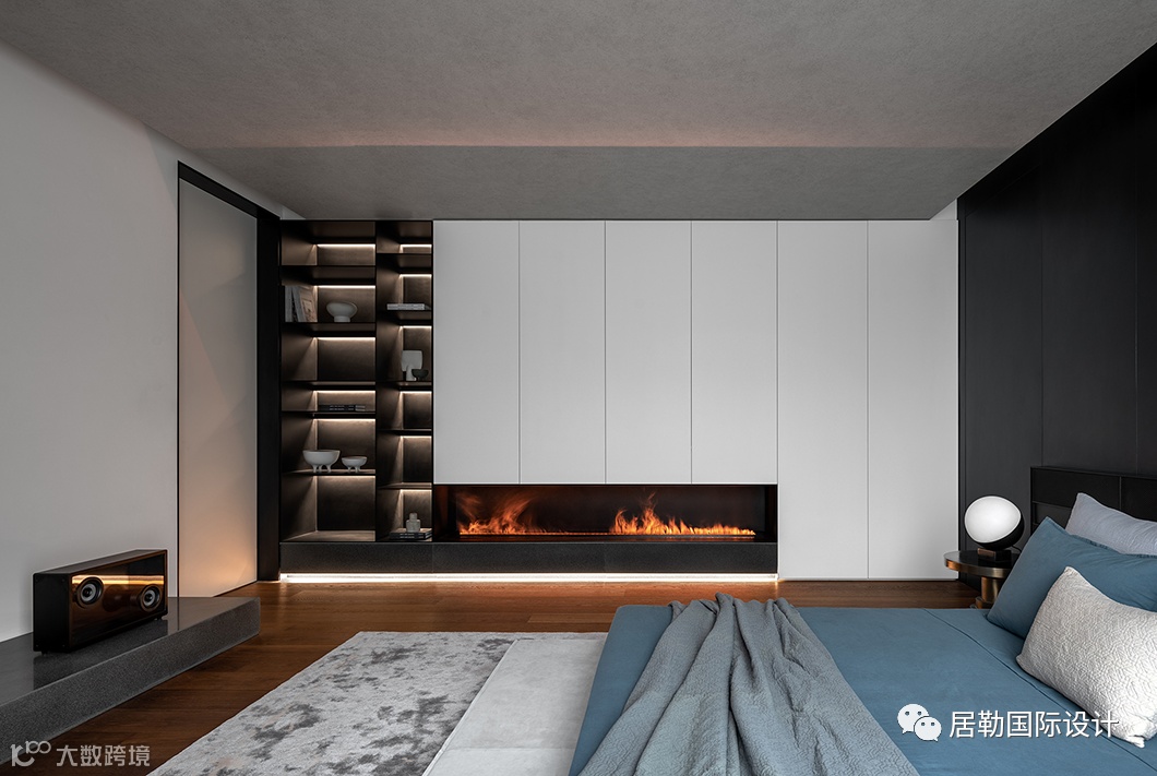 豪宅之所以“豪”,非但在于“大”,丰富的细节亦理应值得考究。主卧在点线面的排布中有着熟稔自如的转换,在黑白灰的围合中饱含深情。