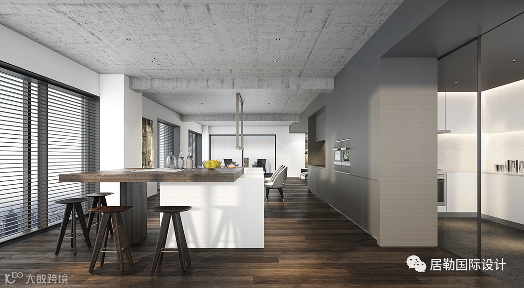 客餐厅作为承载家人情感的纽带,也是一个集沟通、陪伴、美味为一体的场所,将顶层更优的景观视角留给客餐厅,试图塑造轻快的互动共享区域。