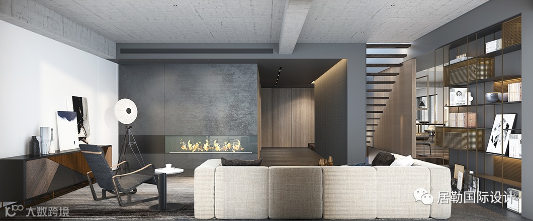 壁炉的焰火在黑色金属材质的映衬下,保持纯粹格调的同时,亦为客厅注入了一股自在活力。刚与柔、动与静皆于此上演。