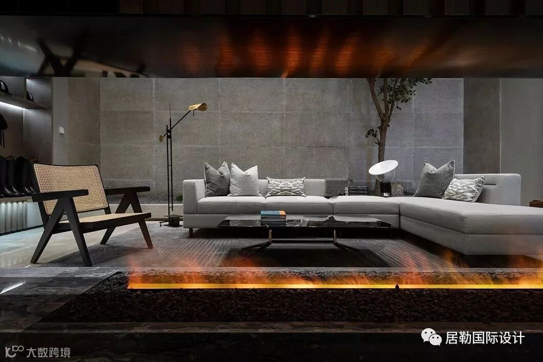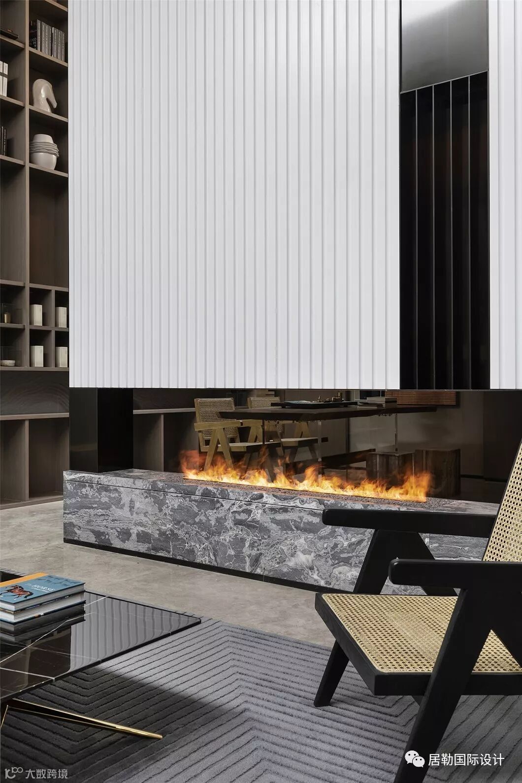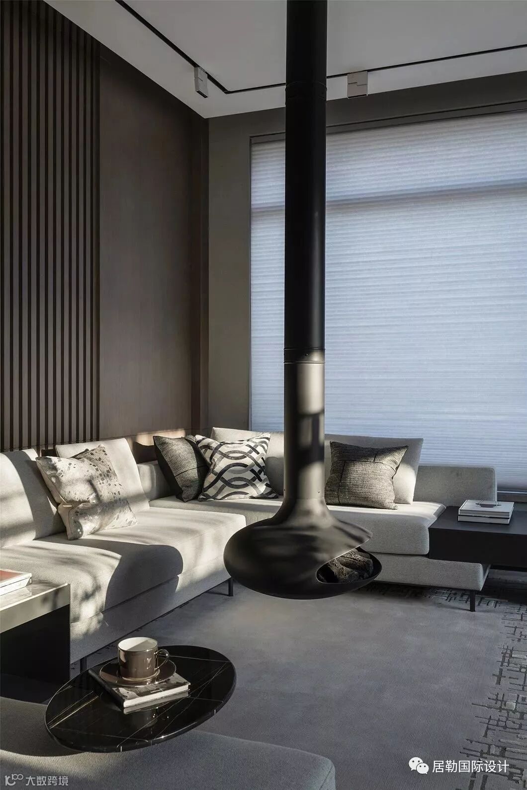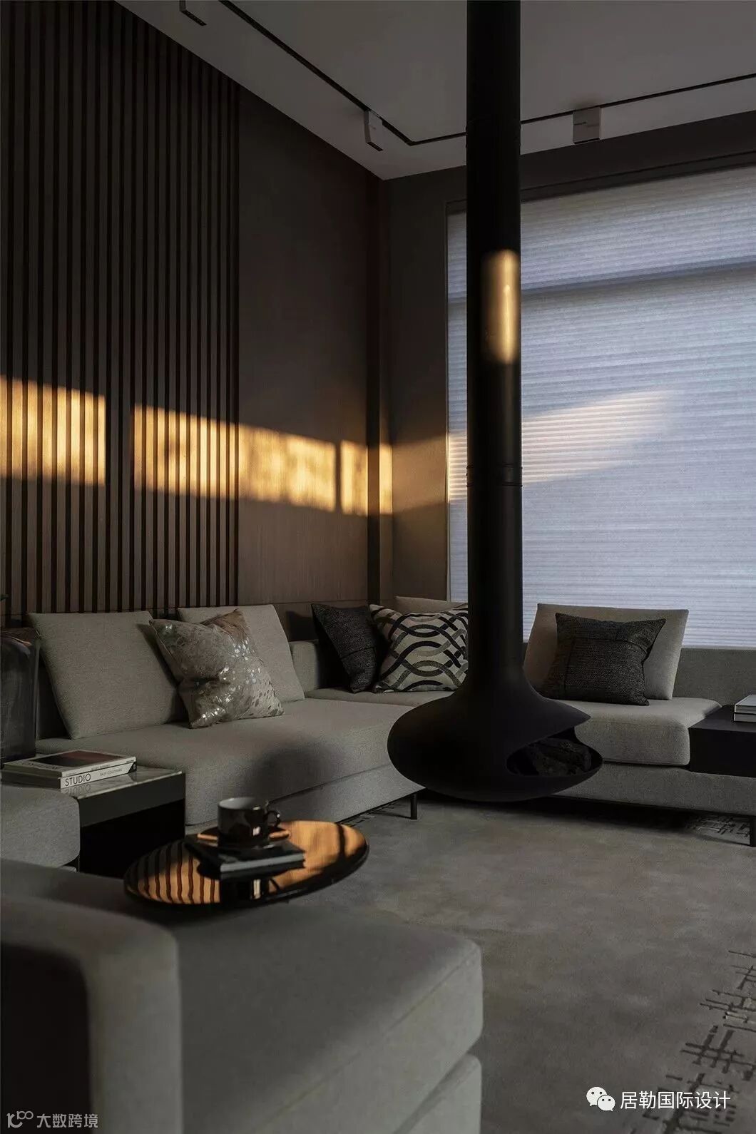 取“围炉夜话”的意象作为贯穿整个设计的主题,是为了满足人对温暖最本能的渴望。客厅以大面积的灰色调铺陈叙事,为传统性质的样板空间注入沉静而抚慰人心的力量。