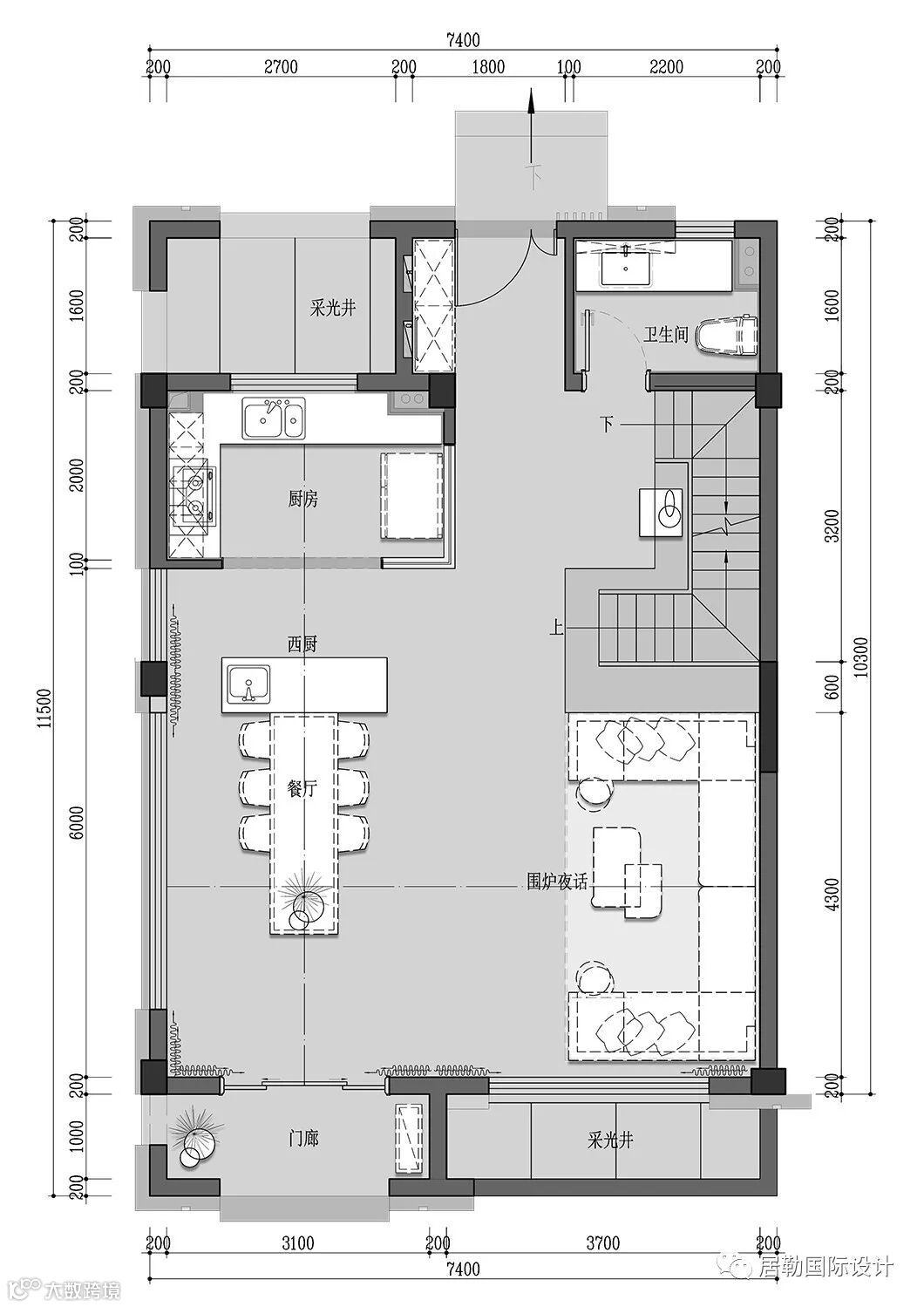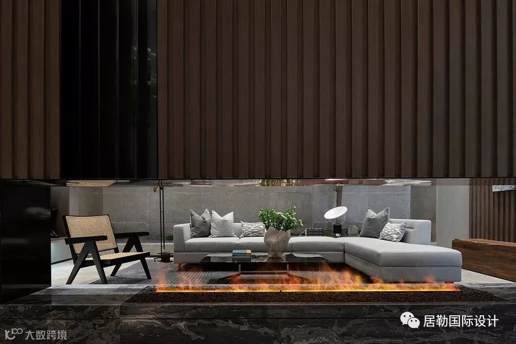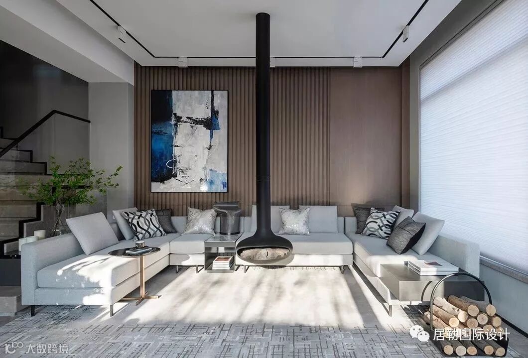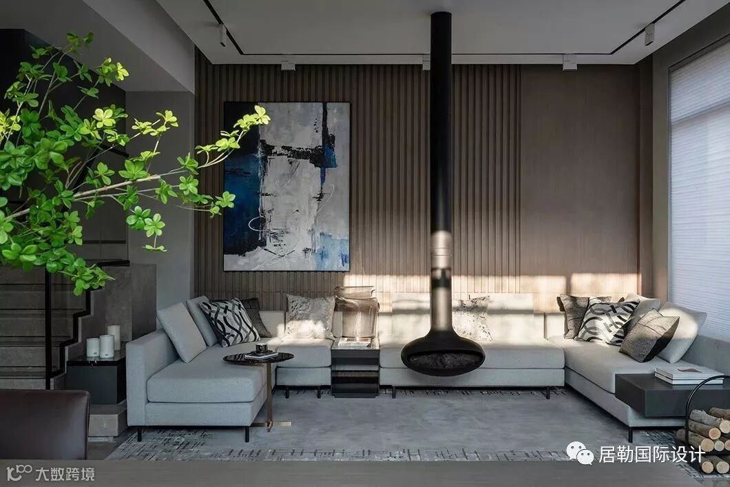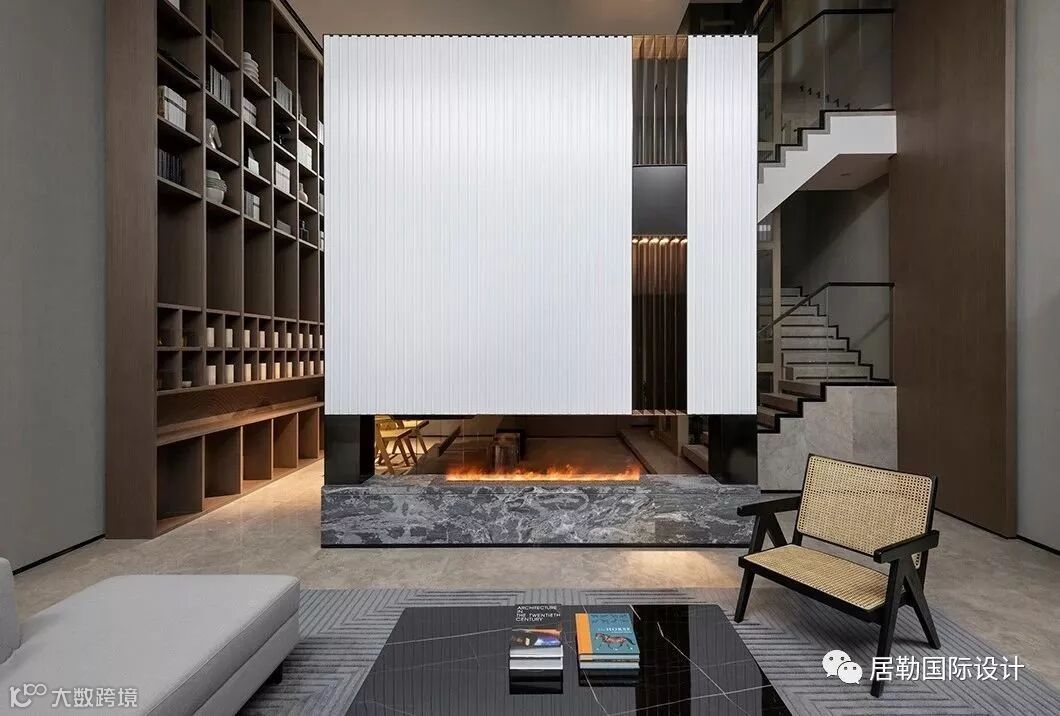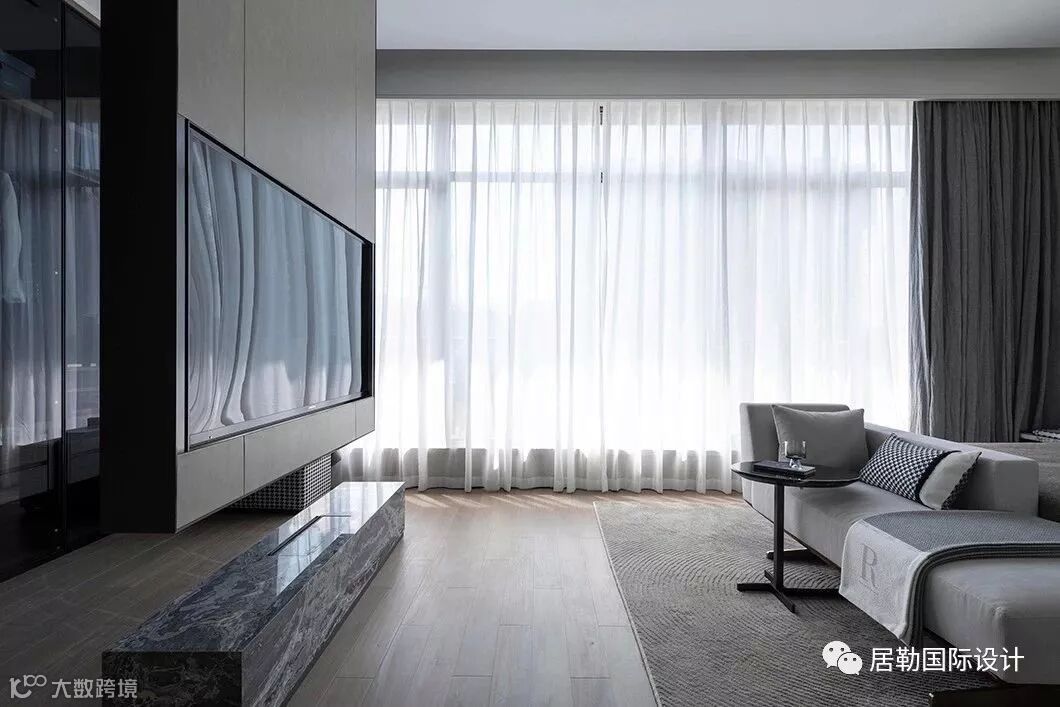 取“围炉夜话”的意象作为贯穿整个设计的主题,是为了满足人对温暖最本能的渴望。客厅以大面积的灰色调铺陈叙事,为传统性质的样板空间注入沉静而抚慰人心的力量。