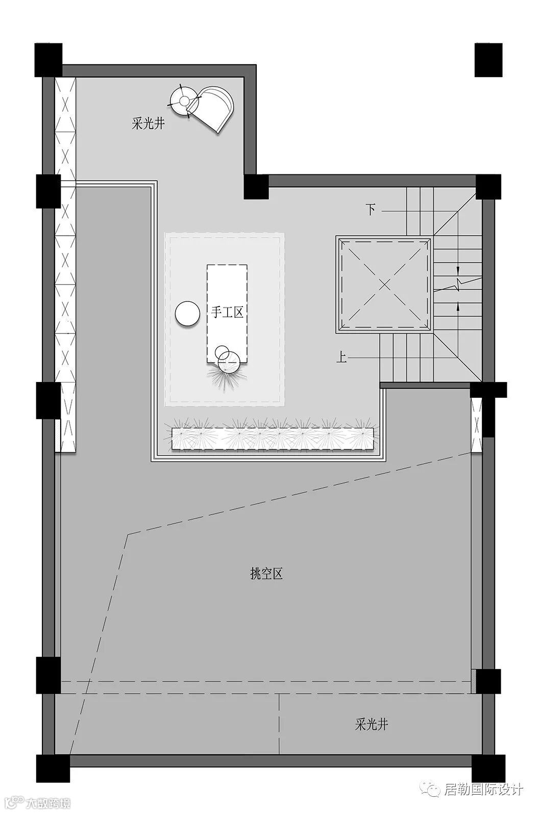天光自高处挑空倾泻而下,石墙似一块大画布,光线如同水墨晕染的层次向下渐而浓重。