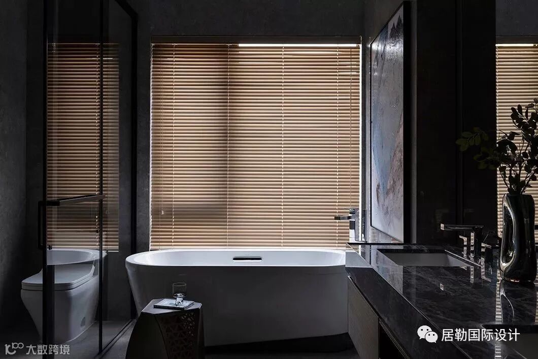 大面积玻璃石材工艺,为浴室空间营造明亮整洁的空间氛围。不加赘余的线条,是对物料本真的尊重,传达屋主人对于美、真、淨的偏爱。