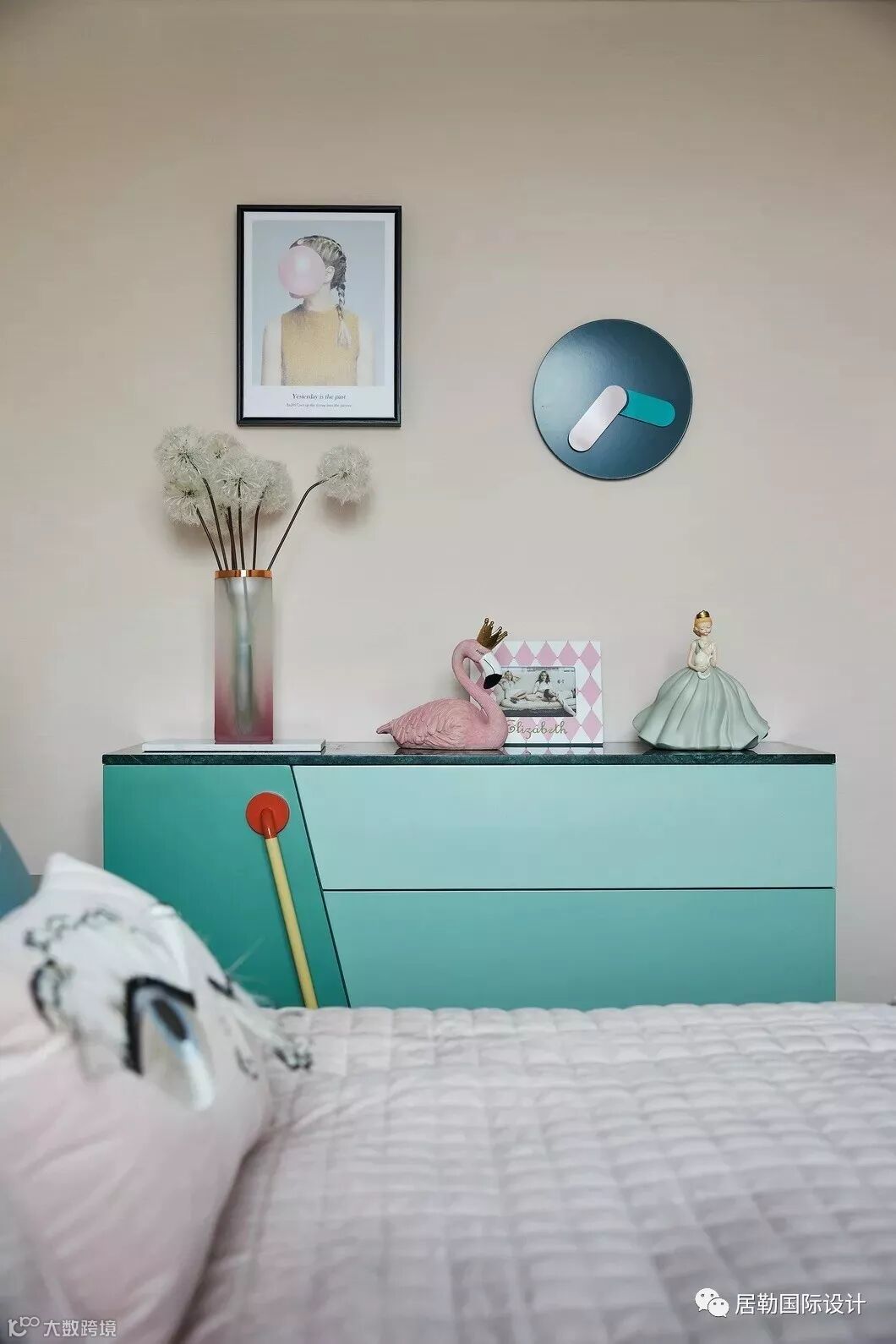 女孩房设计以马卡龙粉与水蓝色交织,火焰鸟、天鹅、公主玩偶以及羽毛装点的趣致抱枕,这些细处的陈设无一不在装点着空间的灵动柔雅,展演出温雅安宁的情调。