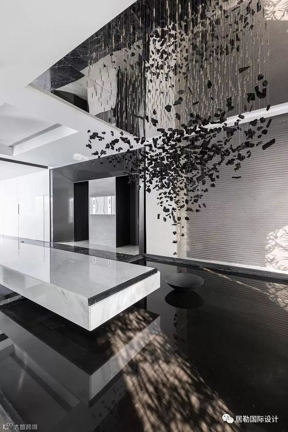 在大厅,网状隔断为空间制造了千千种流变光影,随处呼吸的元素,可以沿着白色天花板,融入镜面,落空为实。