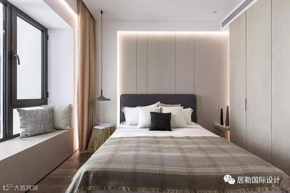 两个卧室,选用了两种不同设计策略,主卧稳重大方,次卧利用壁灯、色彩较为明艳的布艺、疏松的线条设计,塑造素雅恬淡的风格,但同样都是温馨合意。