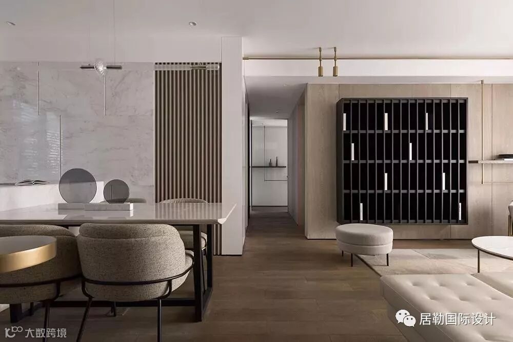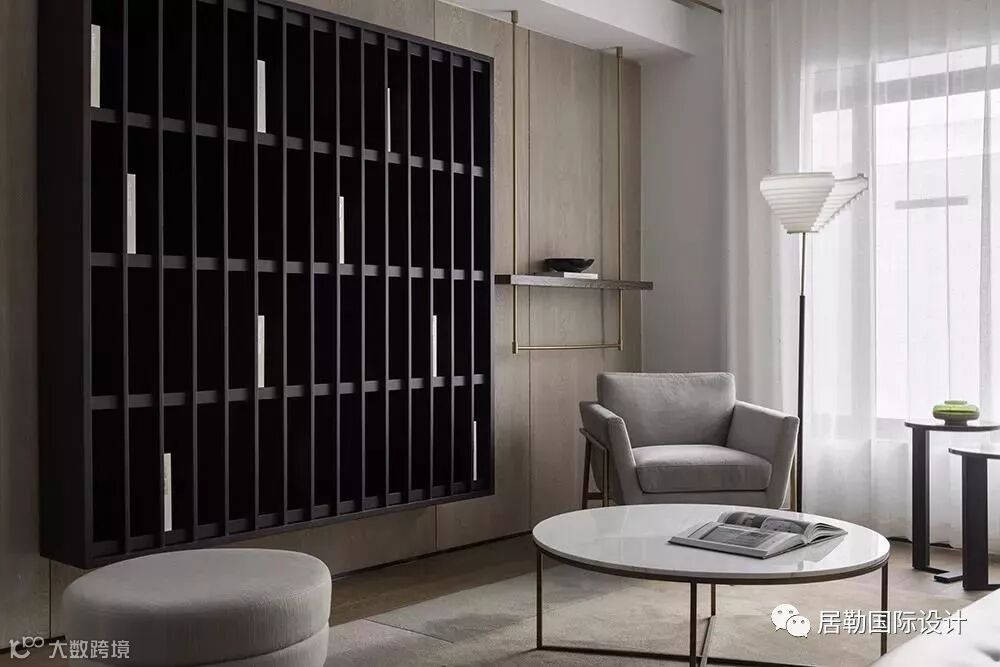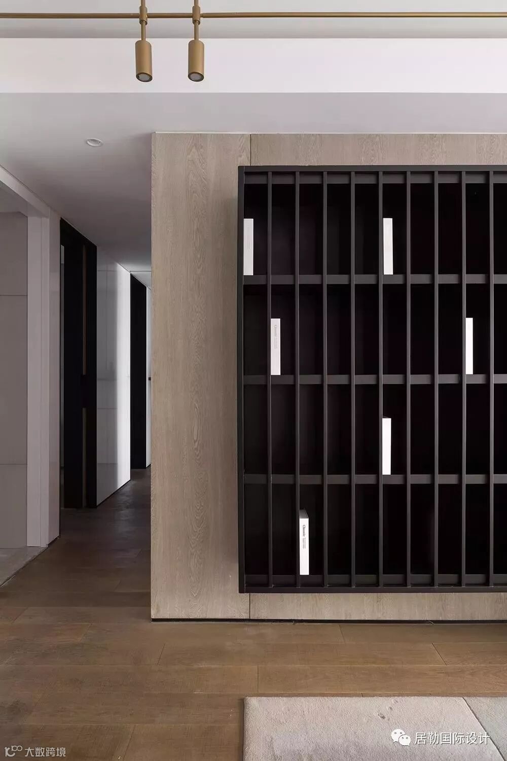 同样,在为住户提供更多生活场景的同时,一步一景的延伸在山、木、水、林、石的原生自然景象中柔和过渡至空间内。将原始璞实的东方韵味,通过墙体几何镂空手法与线性艺术,结合虚实,满足意境布局。