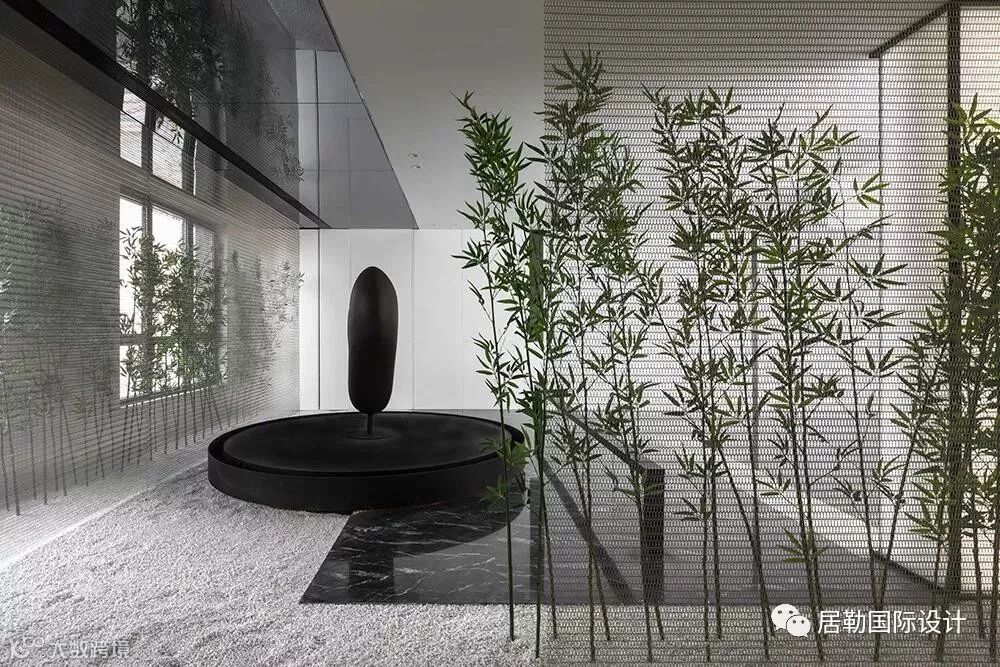 竹隙间,有物伫立,一半卵石一半墨,在繁华都市里,承载自然的美之极致,同时立意禅和,置身其中,由心感悟。