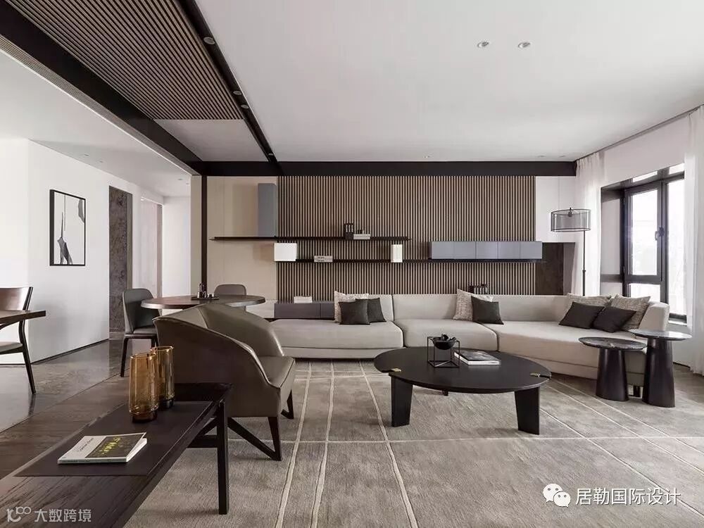 使用直线与弧线,缓冲每个合理距离,横纵色差,圆方构图,在稍显灵动的地毯上,透过水墨精神强调对比景深,融入间接光影点,从而呈现出不同气场的呼应与共振,构筑空间节奏和东方人文礼序。