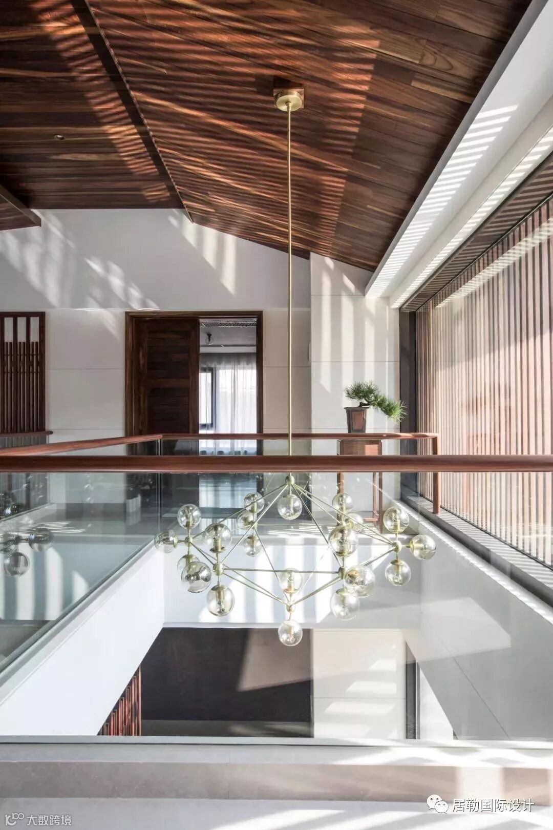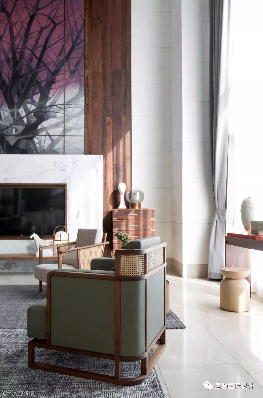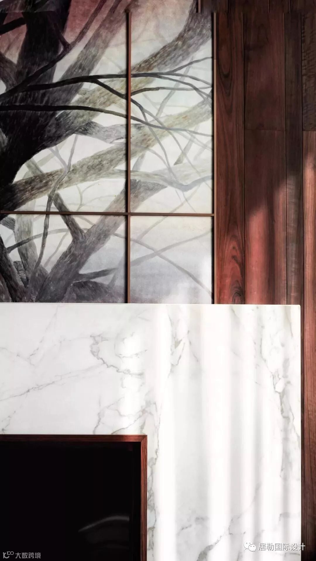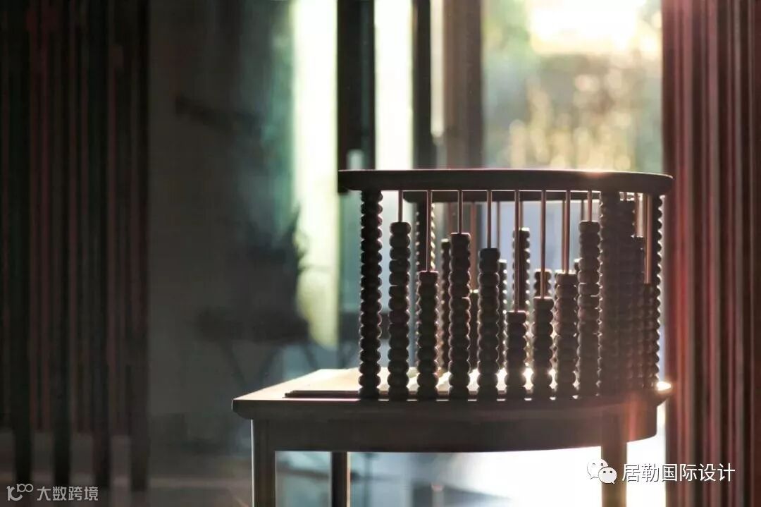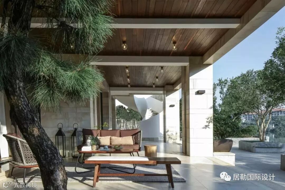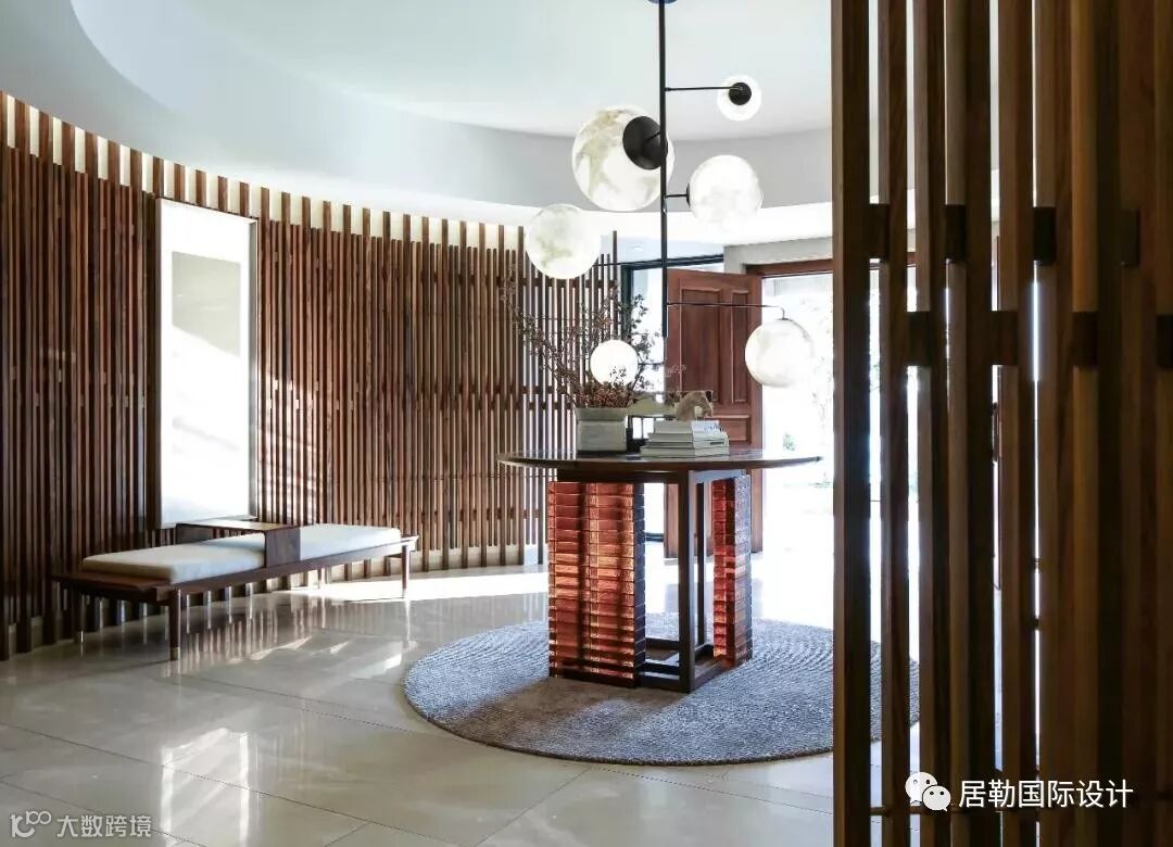 负层门厅是室内与室外之间的气韵枢纽,节奏木线环迴连送,虚合成一个圆形空间。