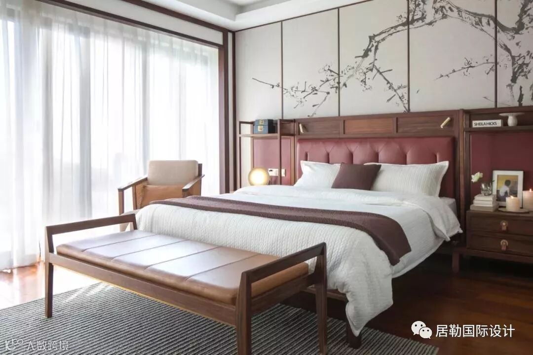 别致的梅花册页屏风在床头缓缓打开,线条蔓延,清幽气息在时光中绽放。