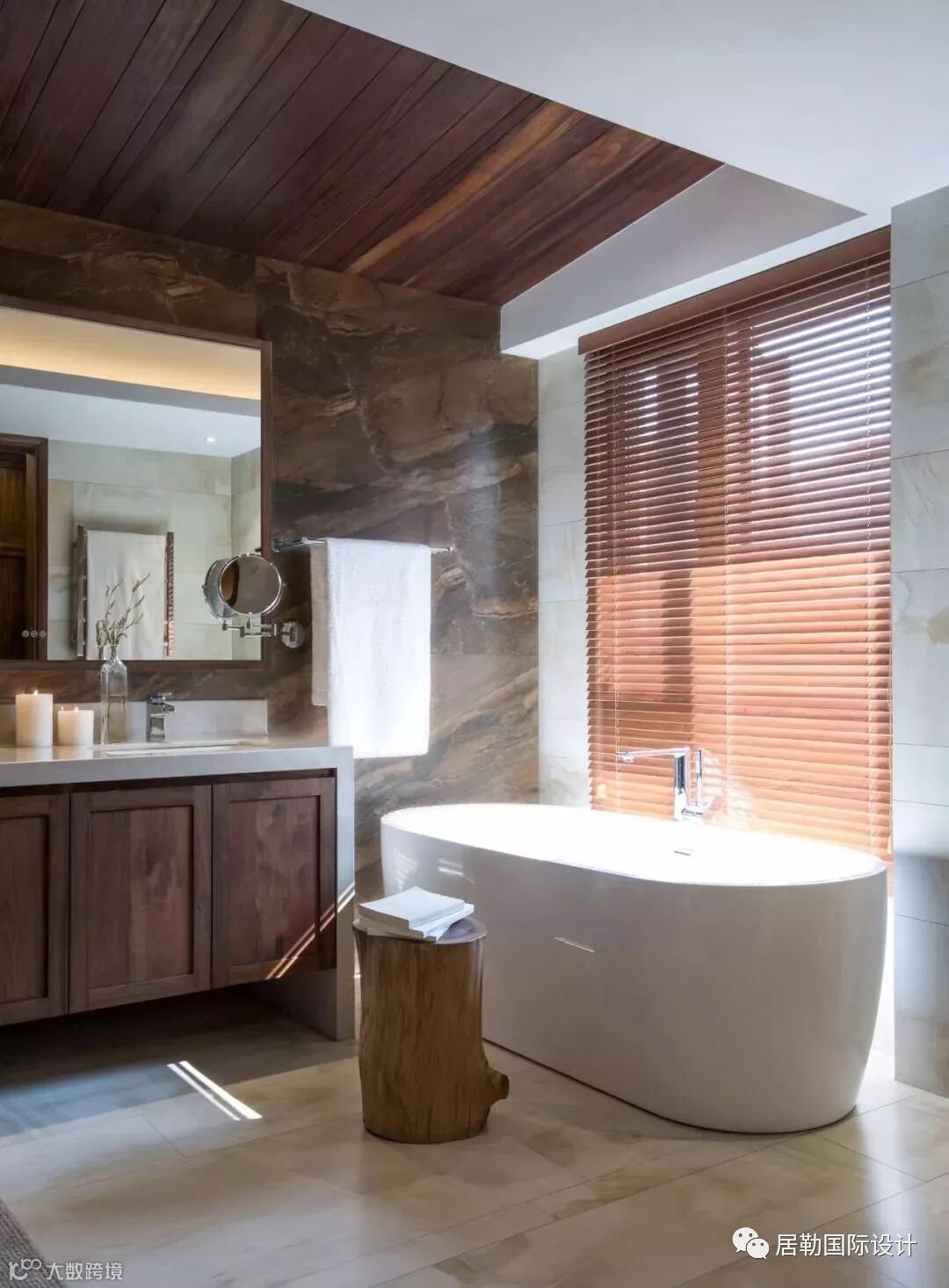 化妆间遵照材料本体的美学感觉,再把自然光,四时变化的景致纳入,就会是一个灵性通透的空间。