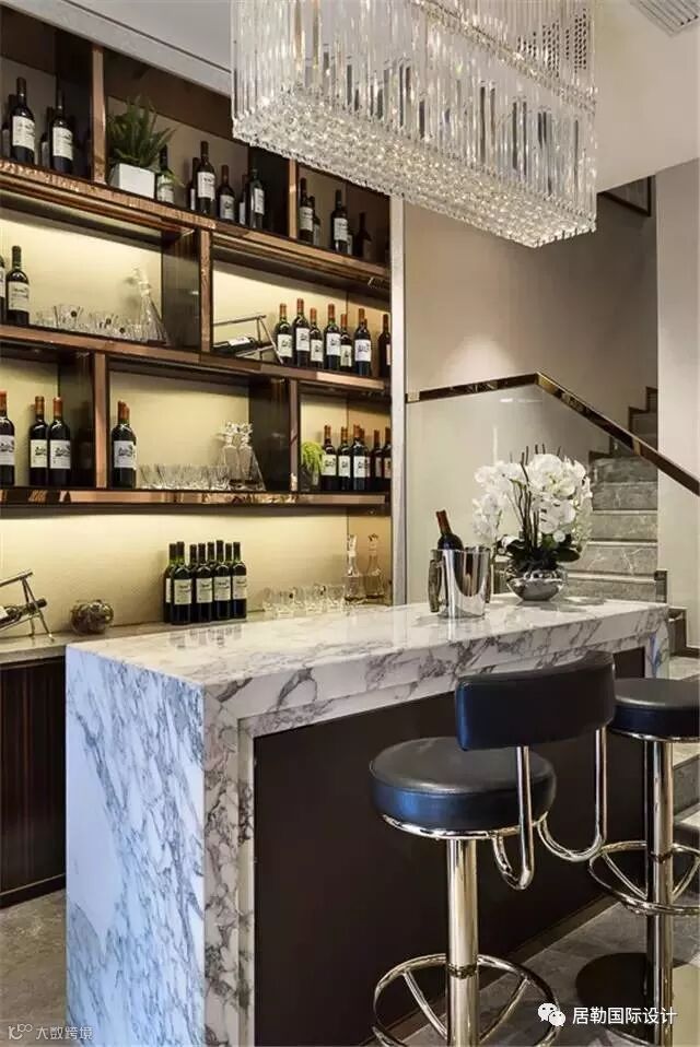 一个颇富特色的家庭酒吧,浪漫而大气。播放着电影《花样年华》的主题音乐,拿出一瓶收藏的红酒,再亲自调制一杯美味的鸡尾酒,让你尽情享受自由随意的生活。