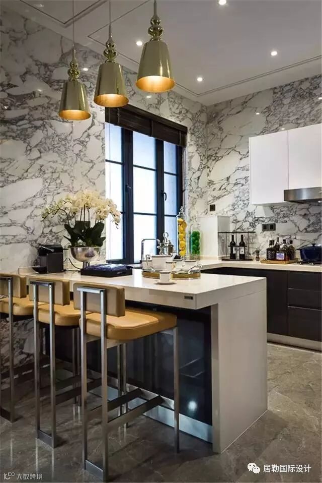 高雅奢华的厨房中,无论是一把刀,还是一个酒杯都经过设计师的精挑细选。开阔明亮的西厨设计让生活更加惬意,多处精巧细致的生活细节交汇出华贵的生活乐章。