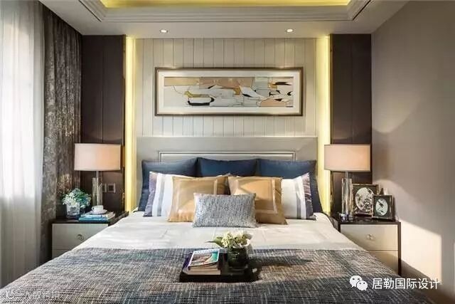 时尚贵气的香槟金色与材质讲究的灰色调床品精彩混搭,巧妙邂逅现代时尚的装饰画,打造低调的雅奢生活。