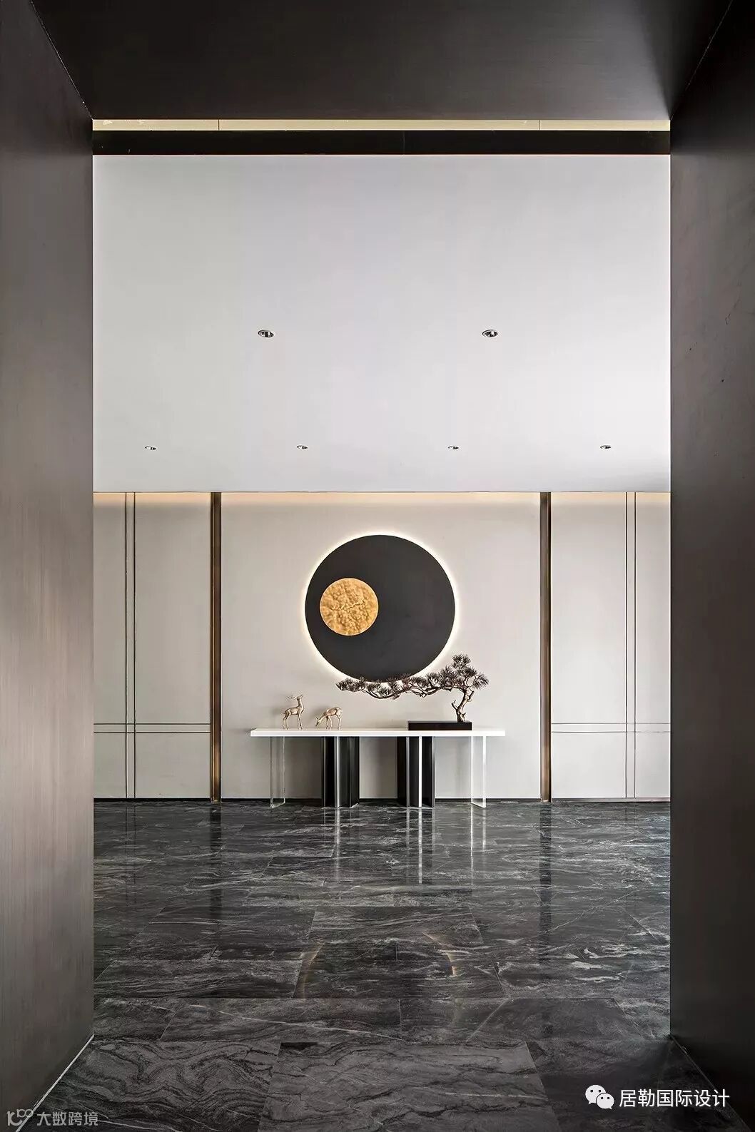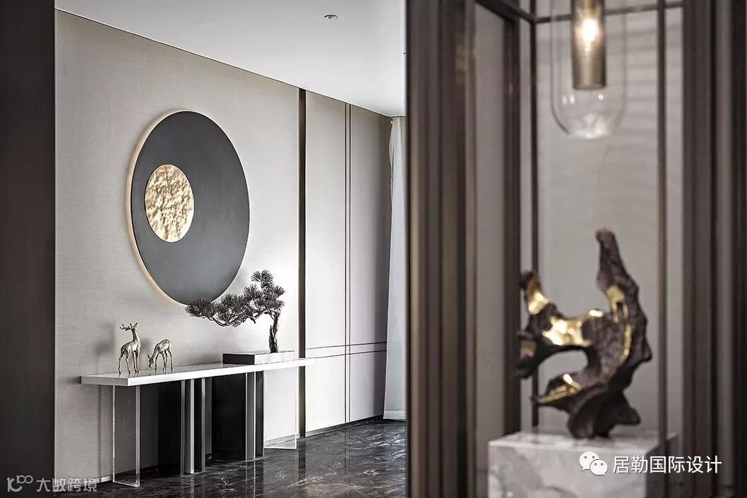 古有钧瓷,入窑一色,出窑万彩。设计师通过平衡色彩,赋予项目生命,将金色的精致与奢华融进黑白灰的中式空间。