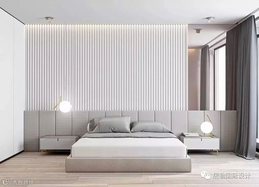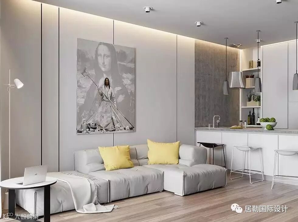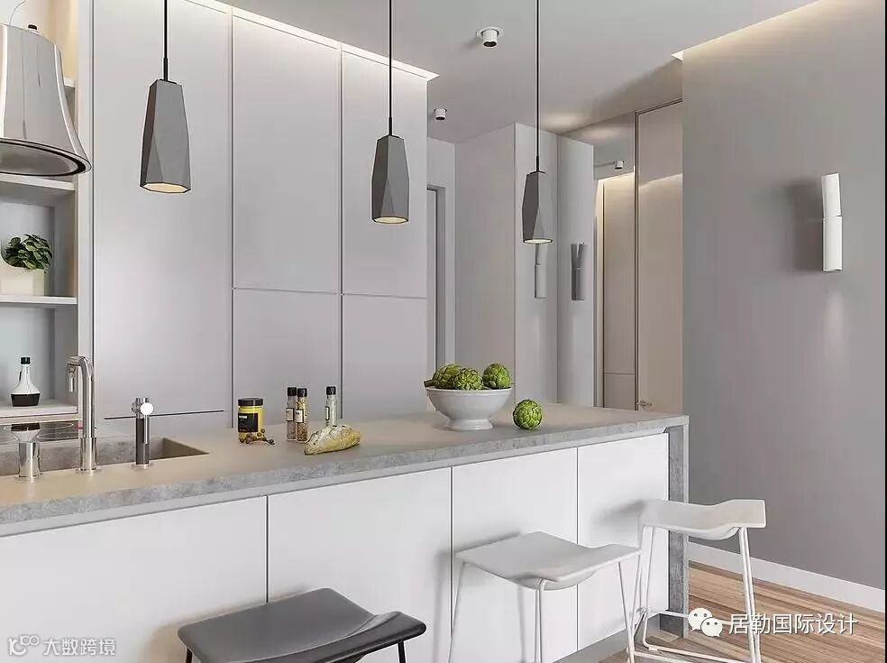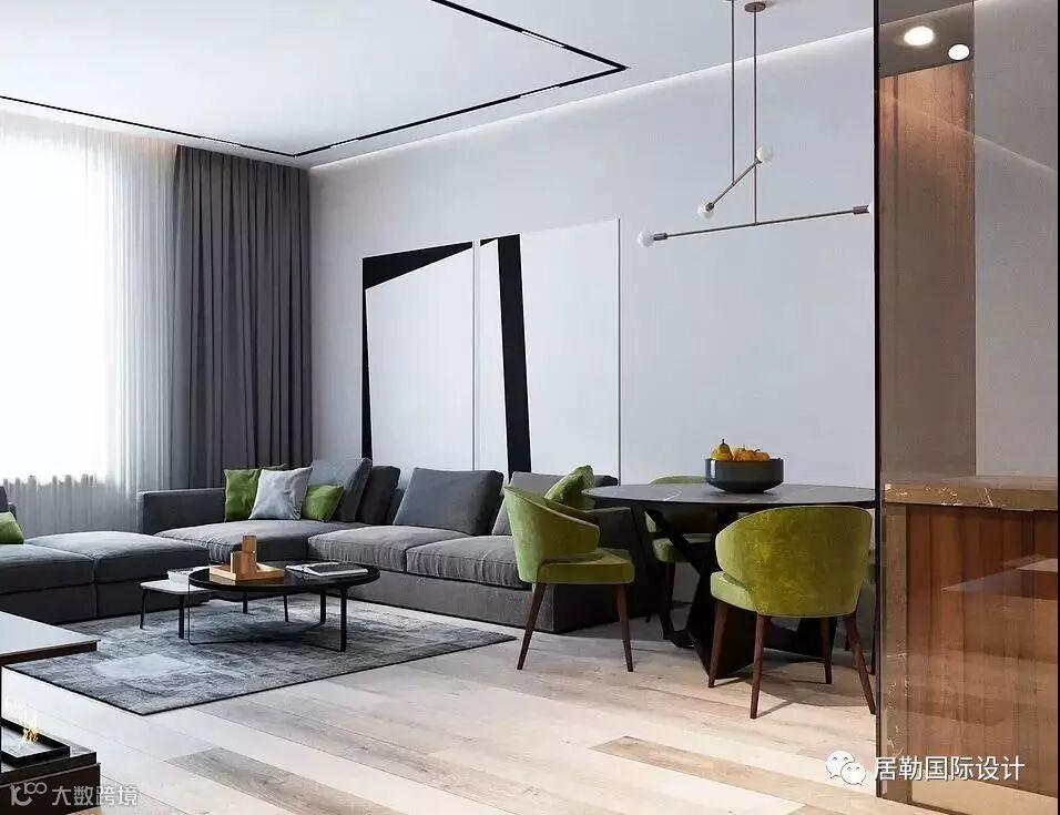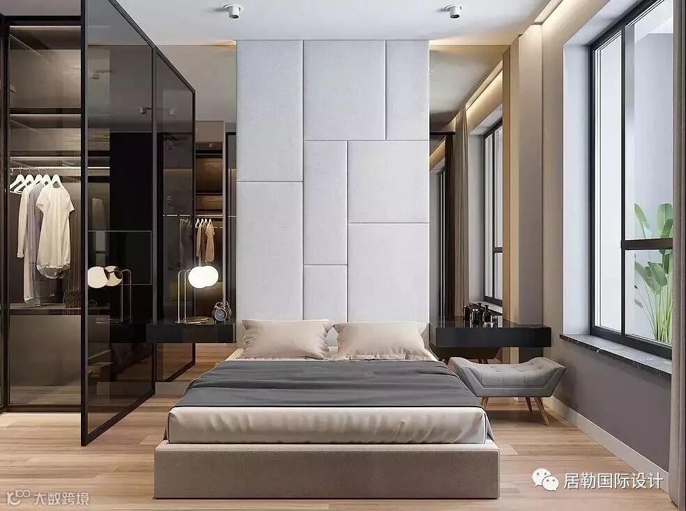 简约大方的现代公寓,设计师主要以白色与浅色调的灰搭配自然纹理,客厅与卧室之间则以深色玻璃隔板分隔,深浅搭配,独一无二的高雅气质,光影交错中冷艳、精致的视感喷涌而出。