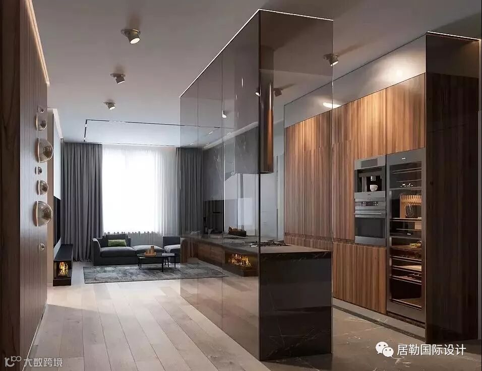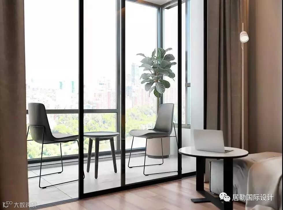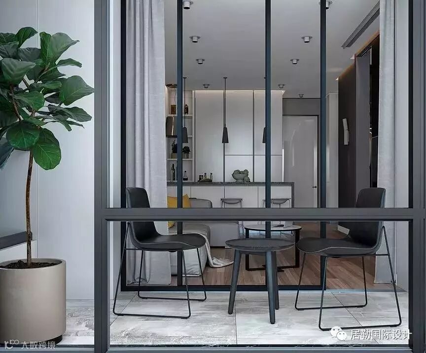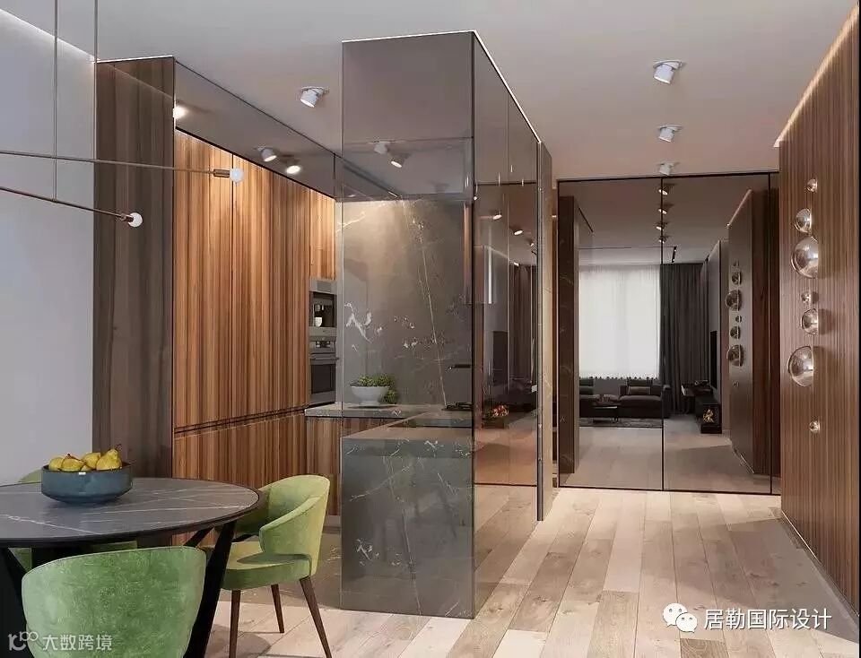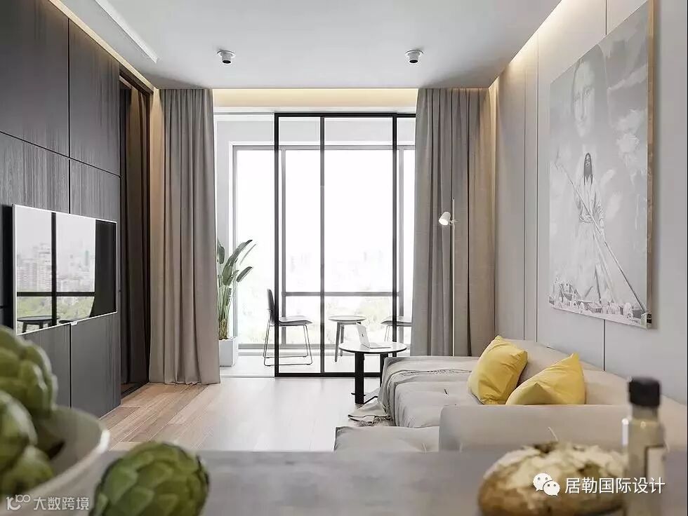 在40㎡的小公寓里,设计师以浅色调搭配自然纹理,客厅与卧室之间则以深色玻璃隔板分隔,深浅搭配,层次鲜明。