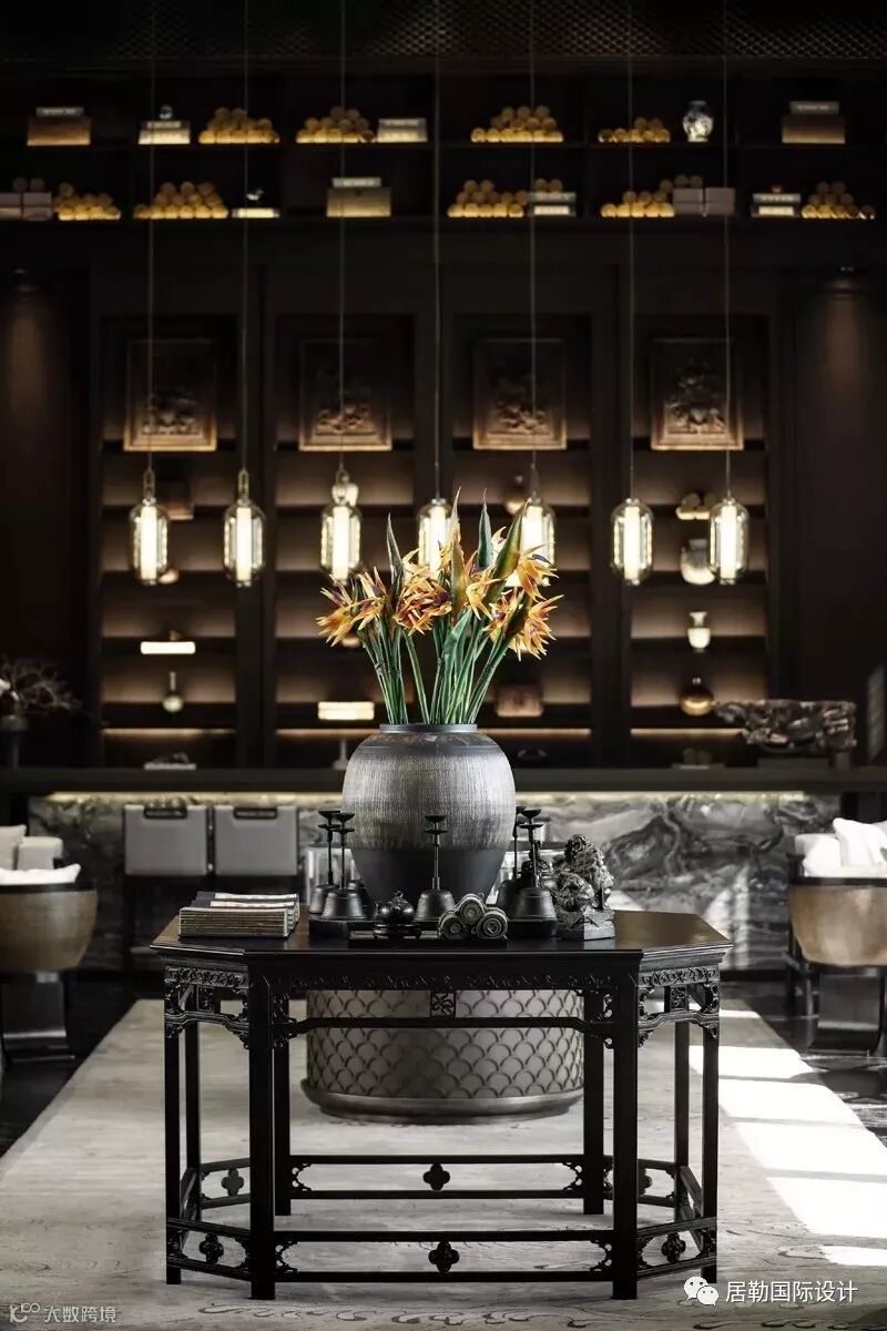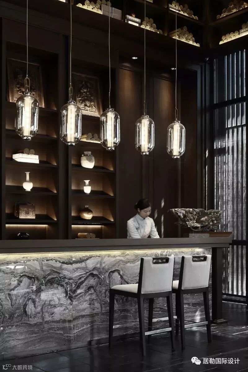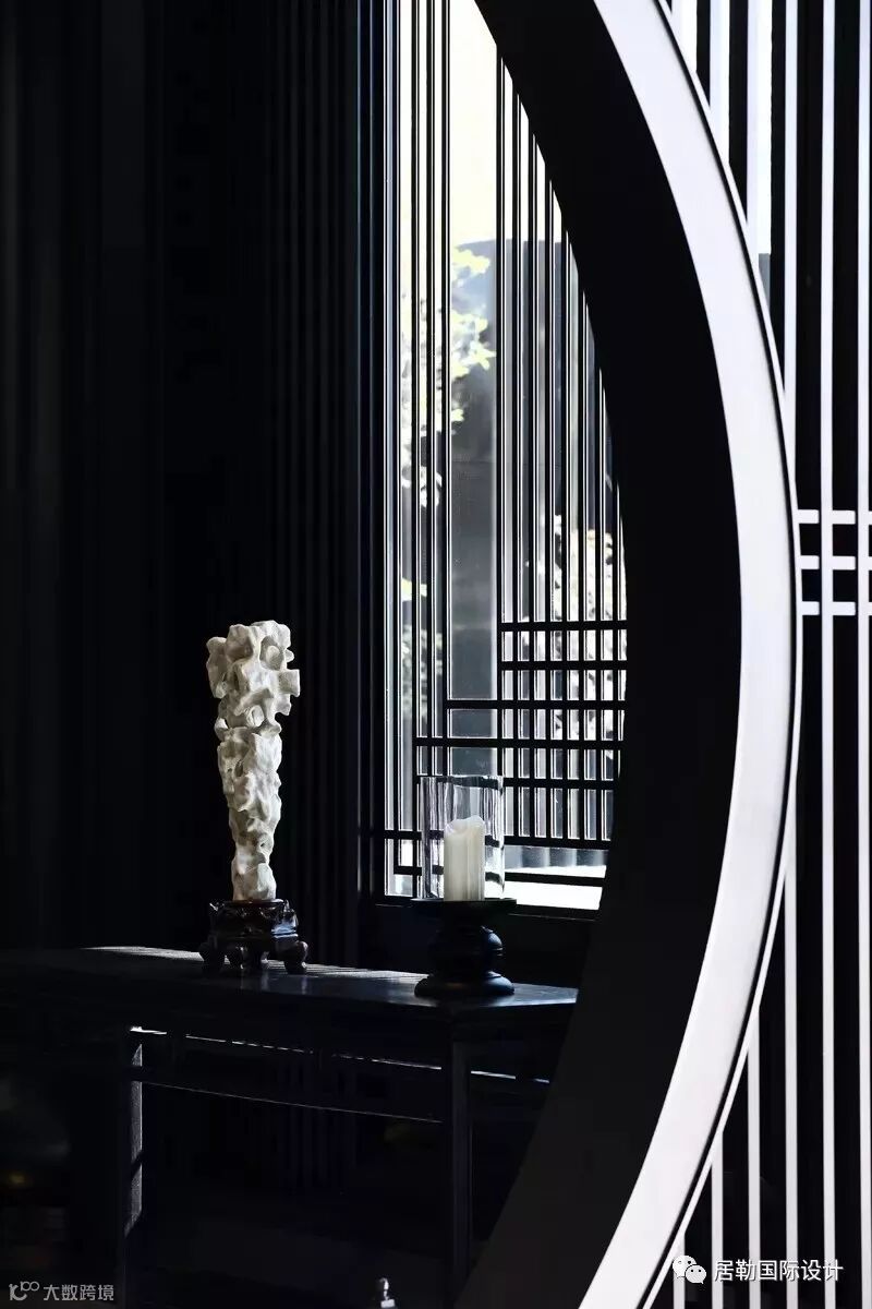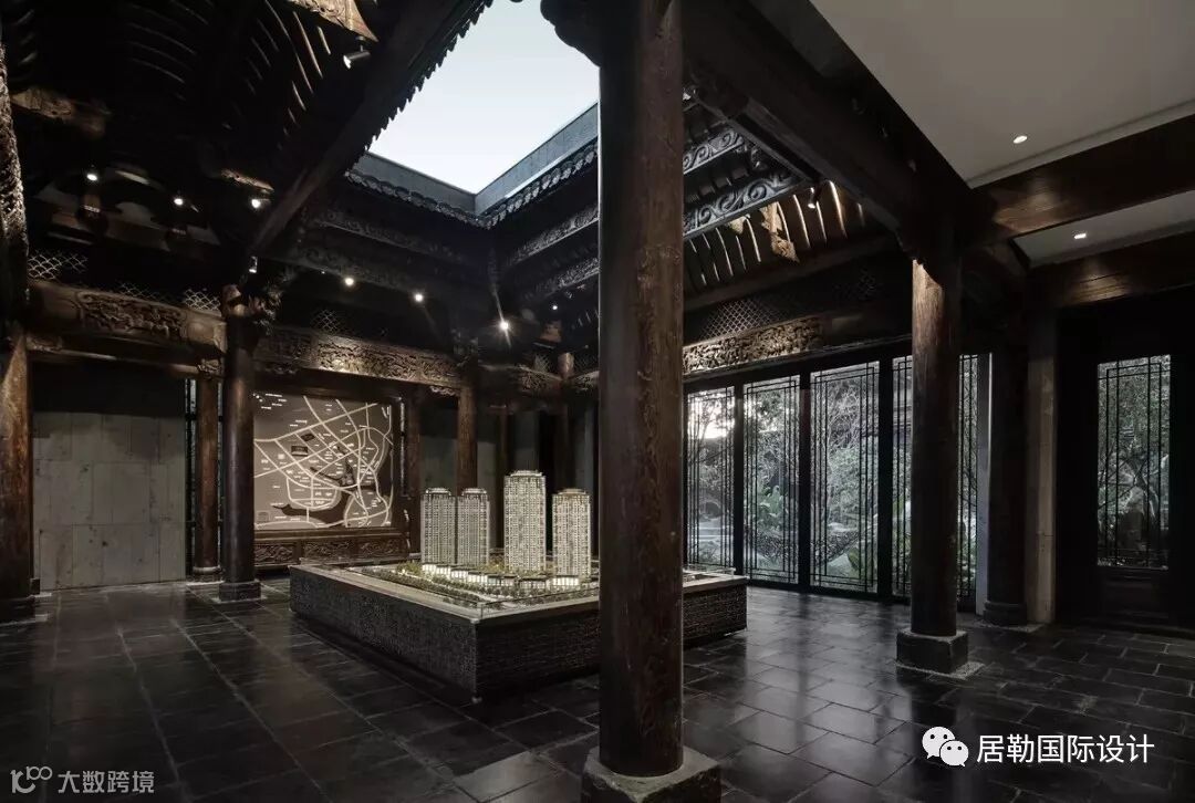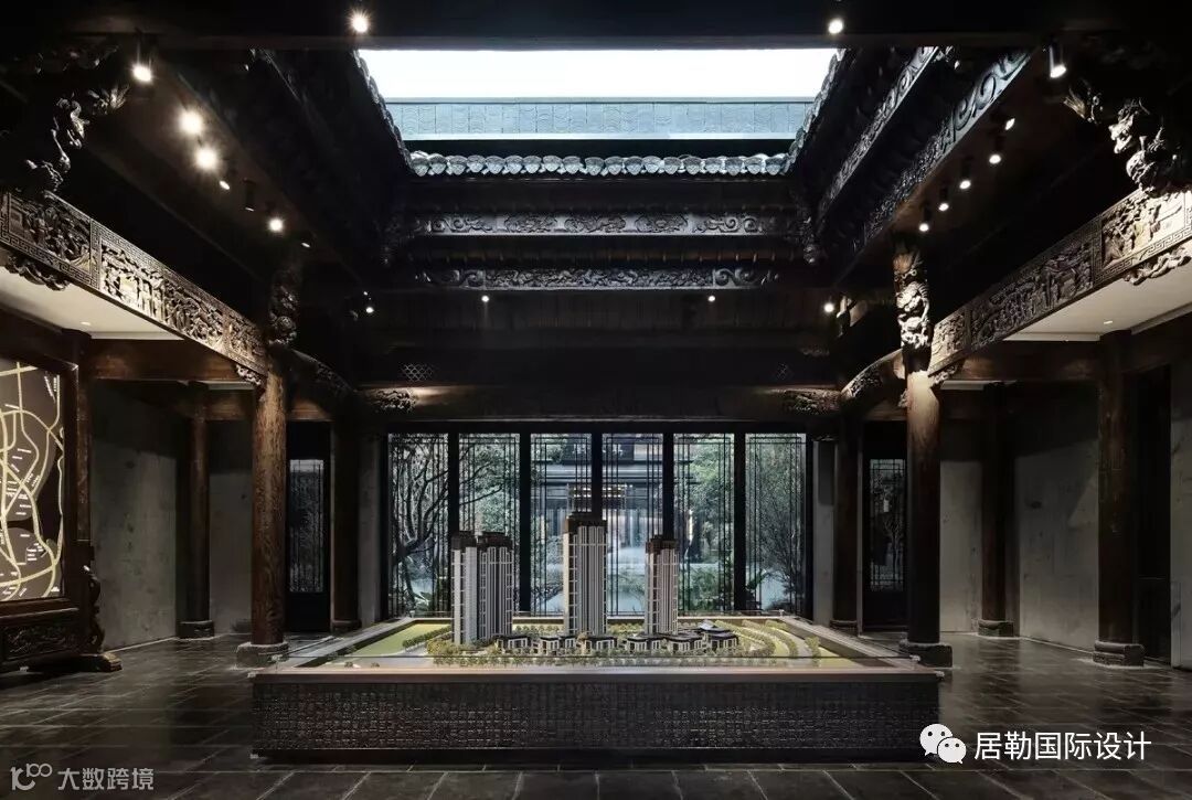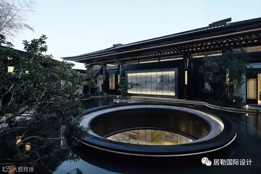 地面采用鳞片状石材拼贴,贯穿门廊,形似龙身 ,为鱼跃龙门之意。正所谓高门阔府巍峨而立,雕梁画栋,层层序列,营造归家的仪式感、尊贵感,入廊穿月、踏浪而行,既有金石之贵,又有林木之雅。